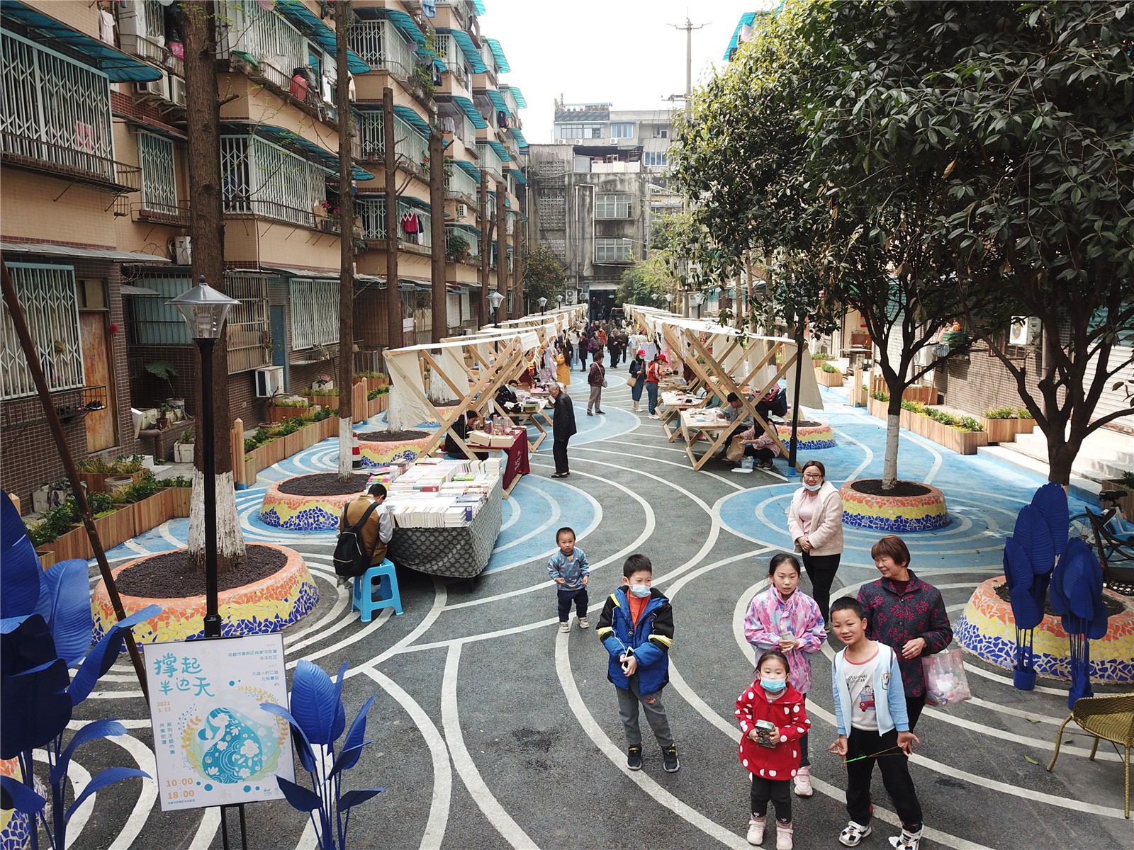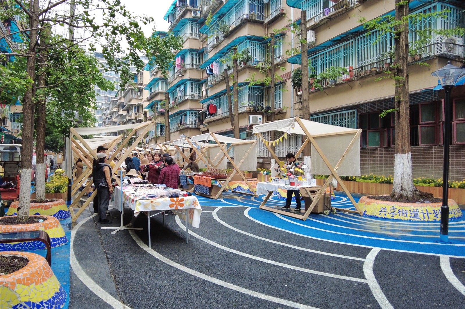 一方面根據(jù)居民的生活習(xí)慣和需求,規(guī)范引入小販與攤車,營造富有市井煙火氣的場(chǎng)景;另一方面,以造福居民為目標(biāo)、從公益角度切入,通過政企多方合作,開展短期或長期的經(jīng)營活動(dòng),探索具備持續(xù)造血能力的商業(yè)模式,讓居民、商家和社區(qū)都能獲利共贏。日前首次市集活動(dòng)的開展過程盡管遭遇了種種困難,但呈現(xiàn)的結(jié)果還是讓團(tuán)隊(duì)異常欣慰,參與活動(dòng)的攤位既有外來商家,也有近半數(shù)的社區(qū)居民,有的出售二手藏品,有的是自己的手工作品,還有的是地道美食……現(xiàn)場(chǎng)持續(xù)了一整天還能保持不錯(cuò)的人流量,作為開端已經(jīng)超出了預(yù)期,并由此創(chuàng)建了市集社群,社區(qū)與居民都表達(dá)了希望將活動(dòng)常態(tài)化的意愿。