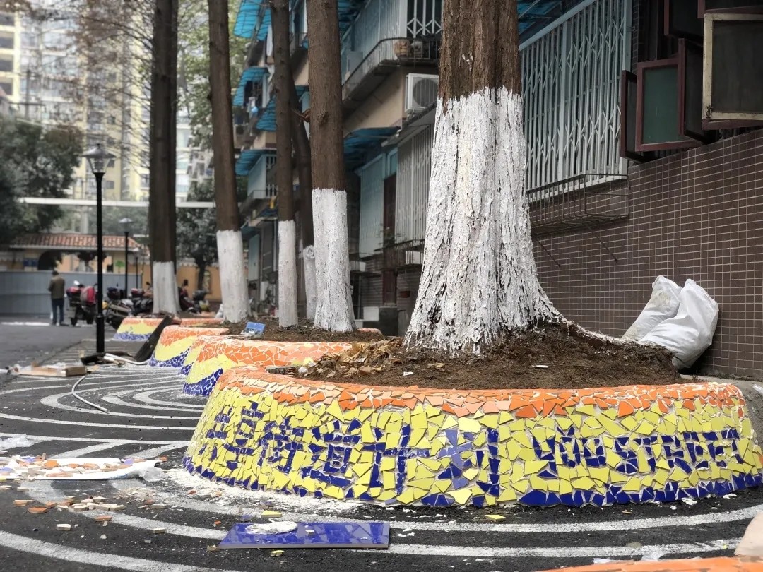 基于項(xiàng)目的性質(zhì)和模式,永豐共享街道的建設(shè)同樣受到激勵(lì)資金預(yù)算的限制,為此設(shè)計(jì)團(tuán)隊(duì)充分發(fā)揚(yáng)在過往實(shí)踐中積累的經(jīng)驗(yàn),盡可能地選擇平價(jià)易獲取的材料、采用低技術(shù)要求的工藝,并在實(shí)施過程繼續(xù)拿出了元有的“殺手锏”——營造小隊(duì)親自上陣,以活動(dòng)的形式召集學(xué)生、居民與工人一道完成路面地繪、種植池馬賽克拼貼等工序,既為施工單位節(jié)約了部分人工成本,也更好地保證了“非標(biāo)準(zhǔn)營造”的呈現(xiàn)效果,更利用這些機(jī)會(huì)起到了正面宣傳的作用,促進(jìn)了與居民之間的交流與理解。