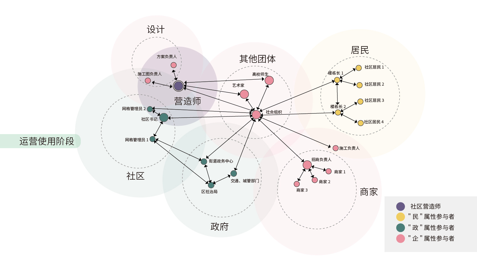 同時(shí),“多元主體”、“公眾參與”等社區(qū)營造的核心理念不能總是停留在形式主義上,為了獲得更有效的行動(dòng)指導(dǎo),元有進(jìn)行了跨領(lǐng)域的理論借鑒。比如社會(huì)學(xué)領(lǐng)域的“參與者社會(huì)網(wǎng)絡(luò)”(Social Network of Participants)理論,通過系統(tǒng)剖析社區(qū)營造過程中參與者的主體特征及其網(wǎng)絡(luò)關(guān)系的變化規(guī)律,分析和總結(jié)參與者之間的社會(huì)網(wǎng)絡(luò)模式,可以為同類型的社區(qū)營造實(shí)踐提供啟發(fā)性的規(guī)劃與設(shè)計(jì)策略參考。又比如公共管理領(lǐng)域的“合作生產(chǎn)”(co-production)模式,能幫助自身更好的理解,如何在項(xiàng)目推進(jìn)的不同階段靈活地轉(zhuǎn)變角色,從而有效的借助外部力量,撬動(dòng)社區(qū)內(nèi)部資源、帶動(dòng)社區(qū)參與,形成可持續(xù)的自發(fā)機(jī)制。