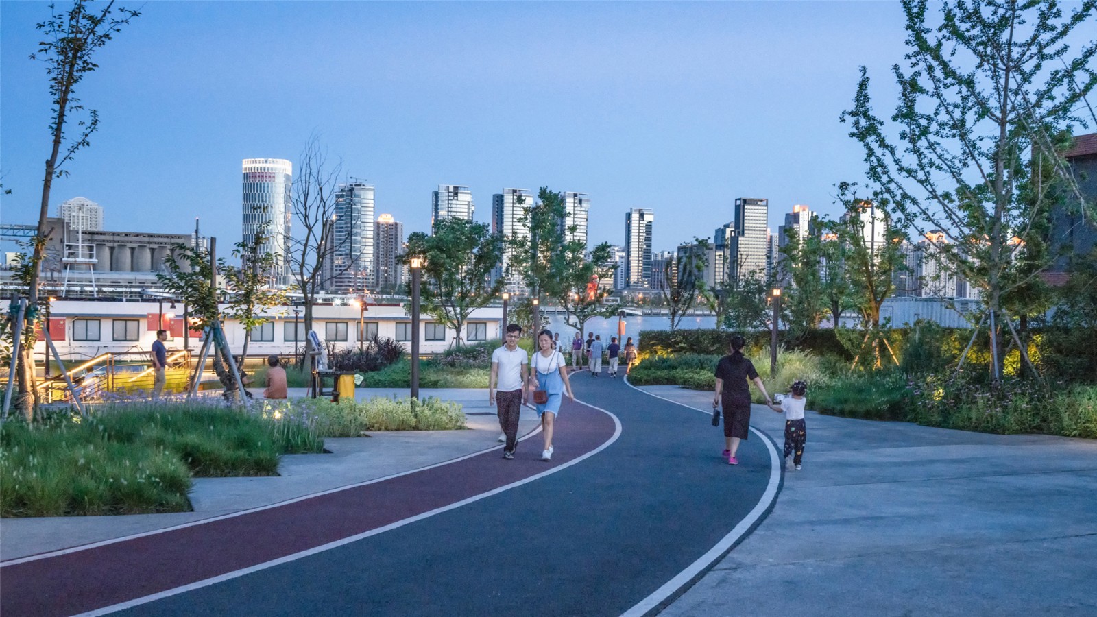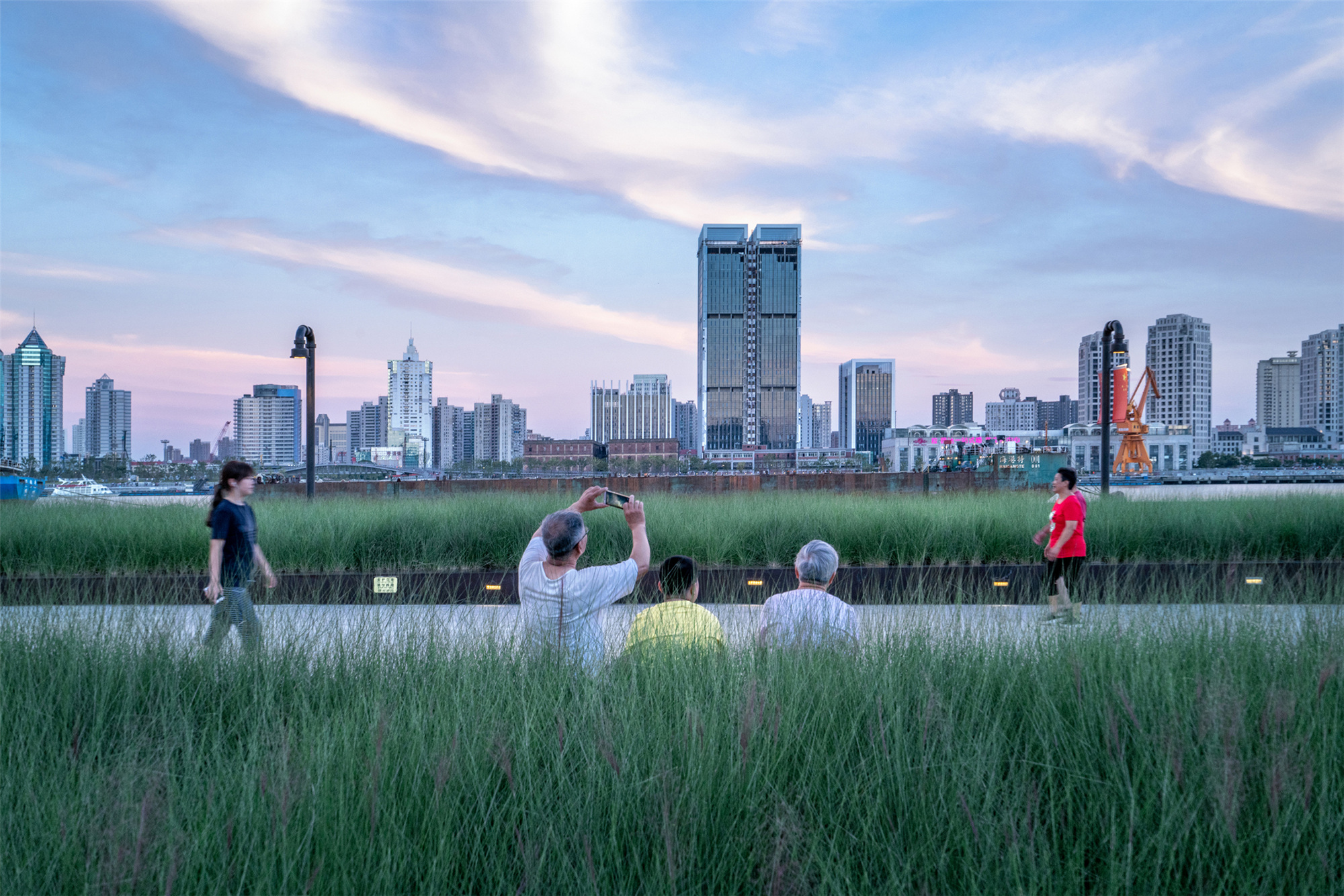 With the beautiful city skyline of Shanghai as the background, the public space of the second phase of the Yangpu Riverfront South Section starts from the human view sights, and returns to the human activities. The industrial shoreline, which used to focus on production functions, is renewed to the flexibility of daily use and city events. The rejuvenating waterfront truly returns to the public, leaving more possibilities for the future.