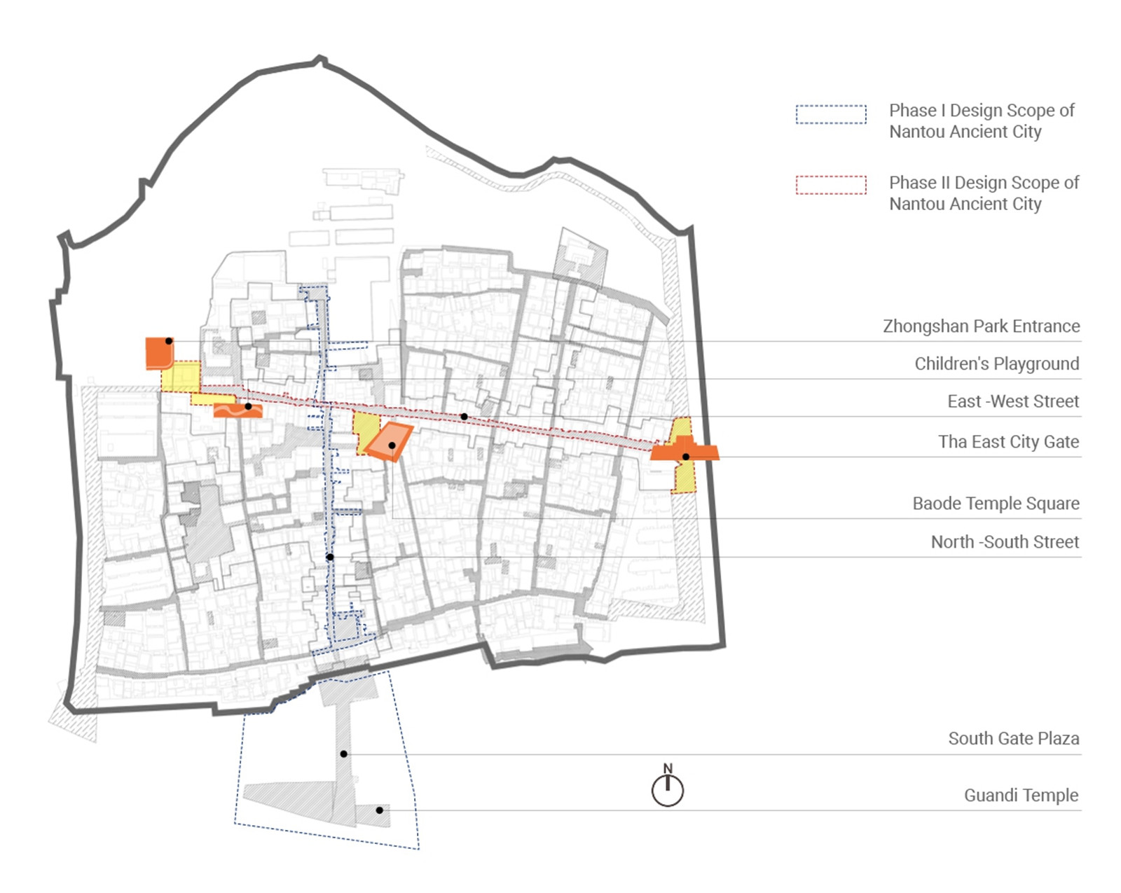 Nantou Ancient City (hereafter as: Nantou) is located in Nanshan District,Shenzhen. With a history of nearly 1700 years, it has witnessed the renewal anddevelopment of the historical city center in Shenzhen. Nantou is now aquickly developing urban village within the rapid urbanization and continuousimmigrations, but it has a complicated out-of–date urban spacestructure. As an ancient historical site, it used to be the "first countyin eastern Guangdong". It is really a valuable relic of local culturalhistory. In the 1950s, Nantou, as the seat of local government, was the corearea in Shenzhen.