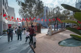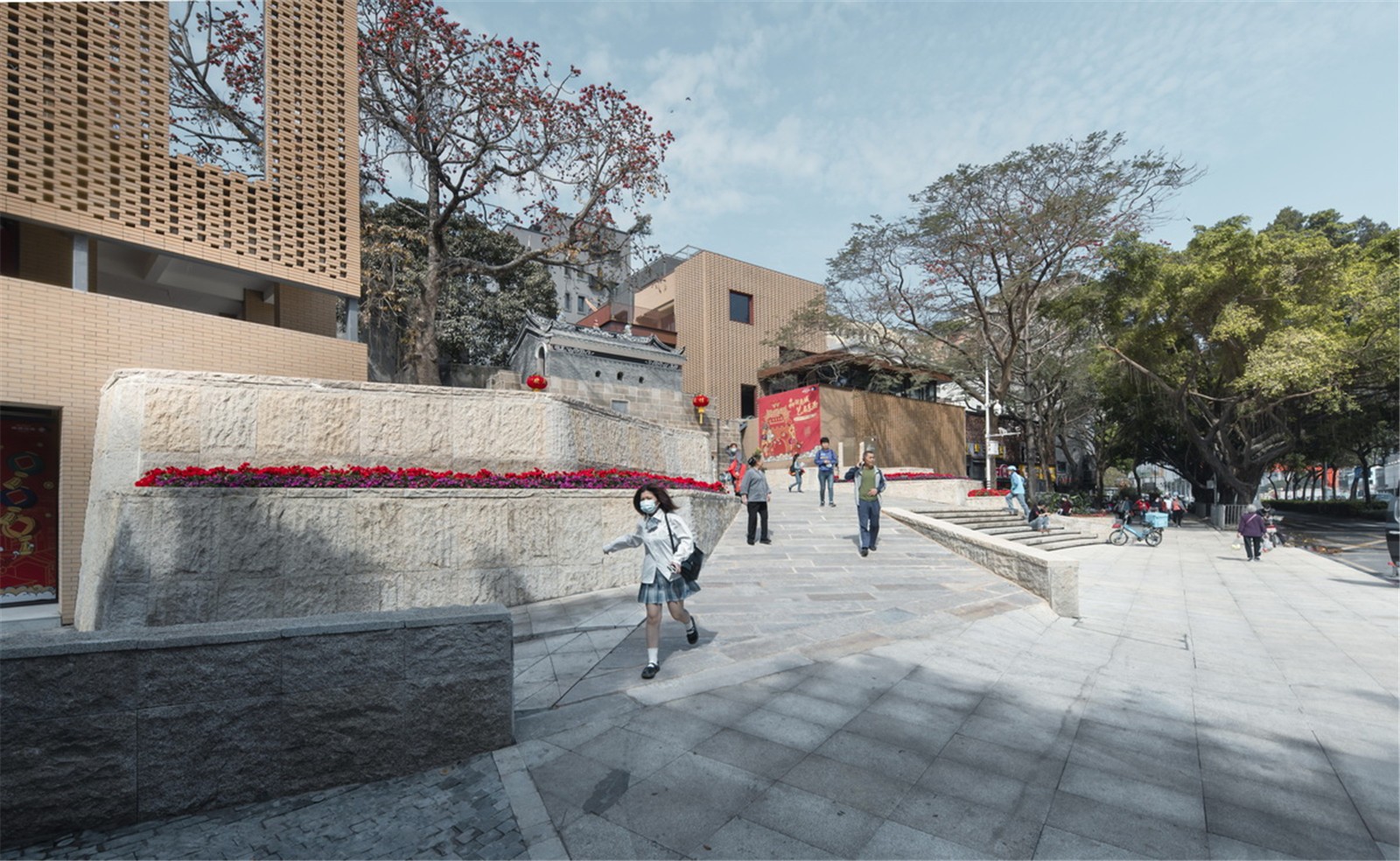 In detail, the existing redundant shrubs on South Square are removedto build an open green space, and the large banyan and scattered stones arepreserved to keep an ambience of reminiscence. Traditional scenes of everydaylife, such as enjoying opera-and-tea time, dragon-lion dancing performance andtrading fairs, all return here for local residents by the renovation of publicspaces.