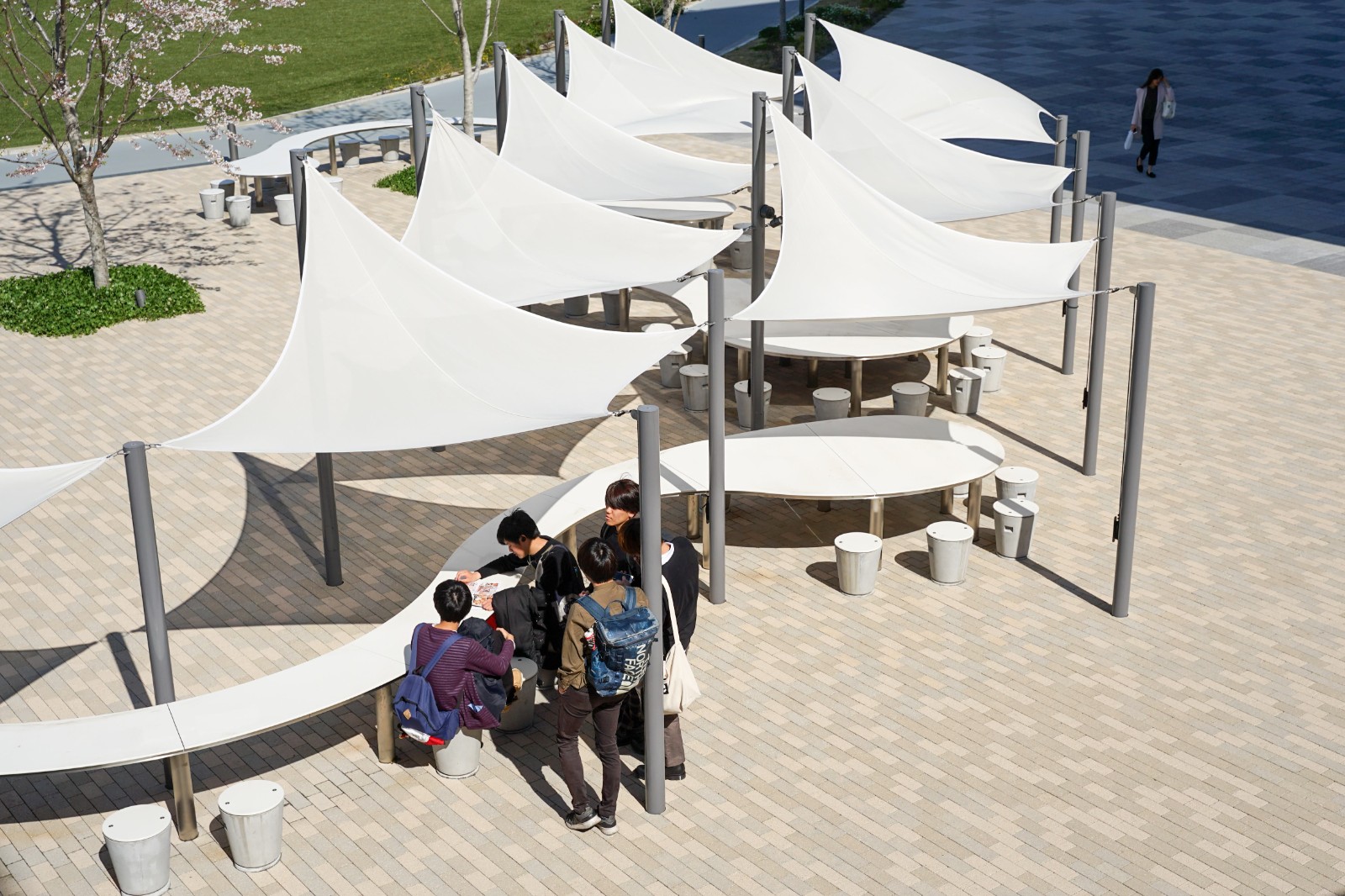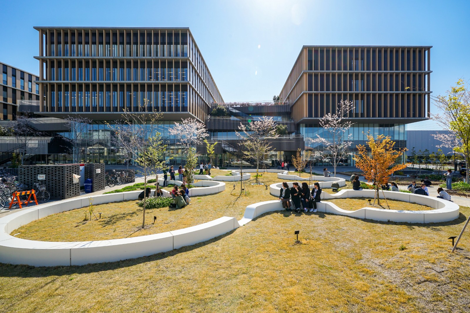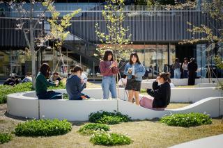 For example, the “eat” terrace adjacent to the food hall is an area where students can converse with each other while eating the food they have purchased from the food hall, while the “know” terrace next to the library features single seats where students can read books they have borrowed from the library or study and think by themselves.