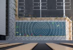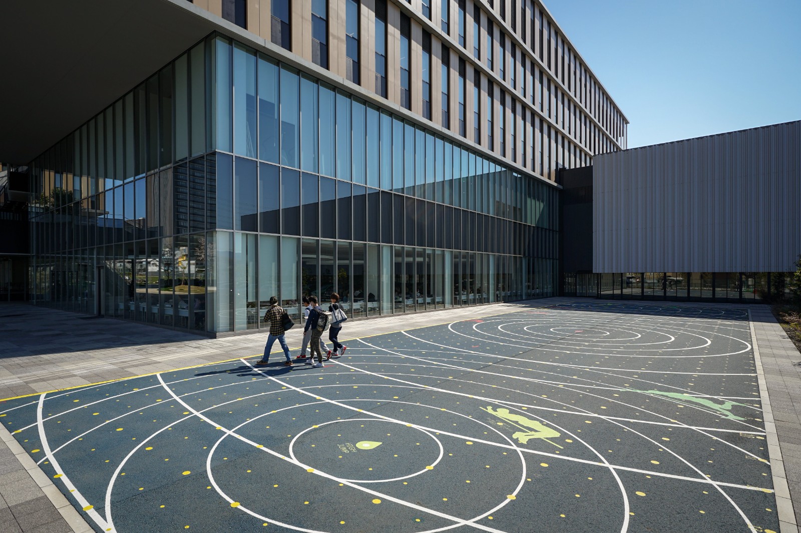 同樣,“育”主題廣場面向教育學院,老師可以利用這些蜿蜒的長凳進行戶外教學。體育館旁的“動”主題廣場上繪制了可用于多種熱門運動的界線,便于體育活動的開展。