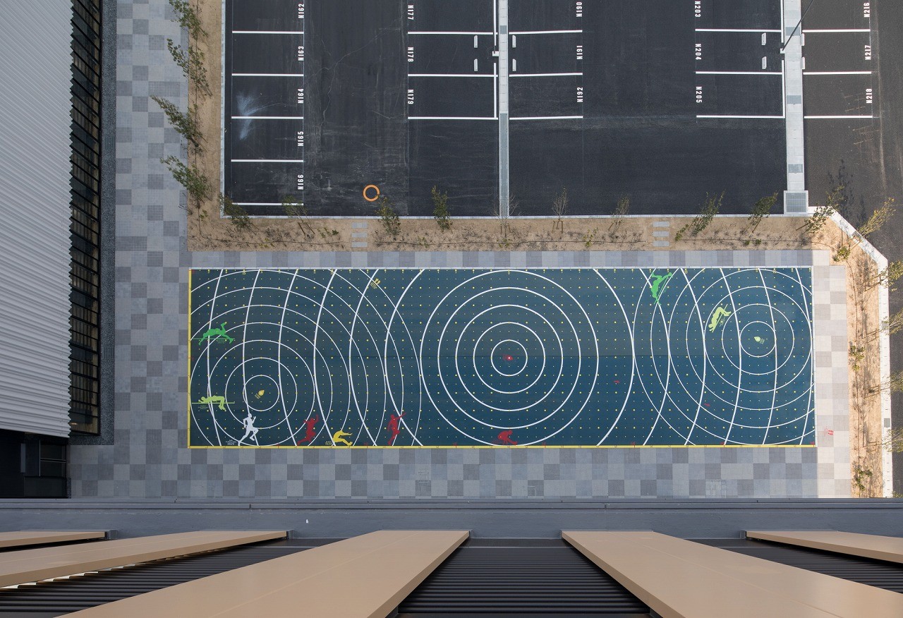 ▲“動”主題廣場上的運動場界線 Major sports' courts and pitches on the surface of "move" terrace ? STGK