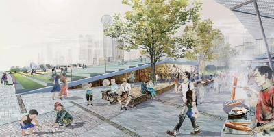 新的規(guī)劃不僅將園內(nèi)的人行道與自行車道和連續(xù)步道連接起來,而且還設(shè)計了新的線路,以充分串聯(lián)精心設(shè)計的視線景觀。其中一項最重要的目標(biāo)是興建一條與防洪堤頂部相連的輕軌線,鼓勵公共交通出行。