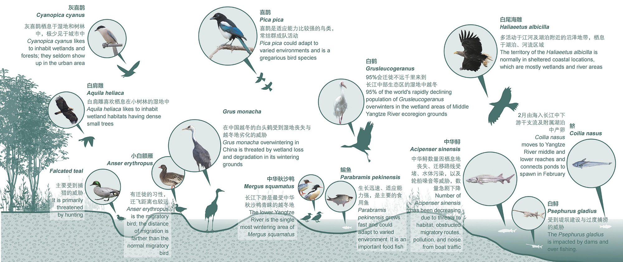 休閑空間的設(shè)置為長江流域重要野生動物預(yù)留了物種傳播/繁衍空間。洪泛時,部分休閑空間會暫時隱入江中,成為動物的樂園。這種統(tǒng)籌考慮的方法不僅可以使生態(tài)系統(tǒng)暫時遠離人為影響、吸引捕食者并改善棲息地狀況,還可以通過減少與血吸蟲接觸的風(fēng)險來保障公眾健康。
