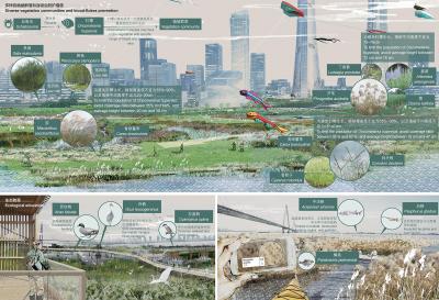 通過在保證安全的前提下對堤壩進行策略性改造,重新規(guī)劃后的公園能夠消納更加頻發(fā)卻可控的洪水,以為場地補充沉積物、培育灘涂。適當(dāng)?shù)氖杩W鳂I(yè)能夠幫助場地構(gòu)建不同的微環(huán)境,形成多樣的濕地生態(tài)系統(tǒng)。