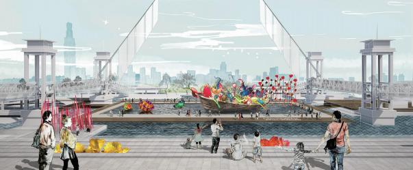 ▲重新思考廢棄的基礎(chǔ)設(shè)施:在公園內(nèi)部,原本計劃要拆除的68座廢棄躉船經(jīng)過適應(yīng)性再利用,轉(zhuǎn)變?yōu)樗匣▓@、表演舞臺、咖啡館和美術(shù)館等。? Sasaki