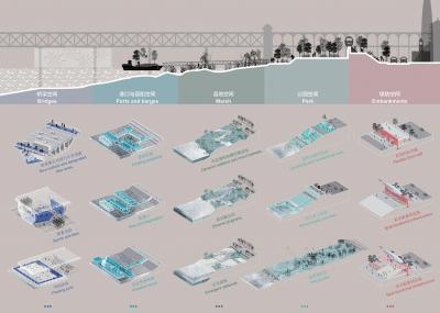 當(dāng)前濱水區(qū)最具標(biāo)志性的元素多是一些象征著武漢20世紀(jì)工業(yè)成就的空間元素。盡管武漢市最初考慮移除這些設(shè)施,但在本次總體規(guī)劃中,Sasaki團隊期望改變它們的用途。
