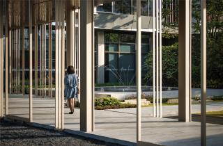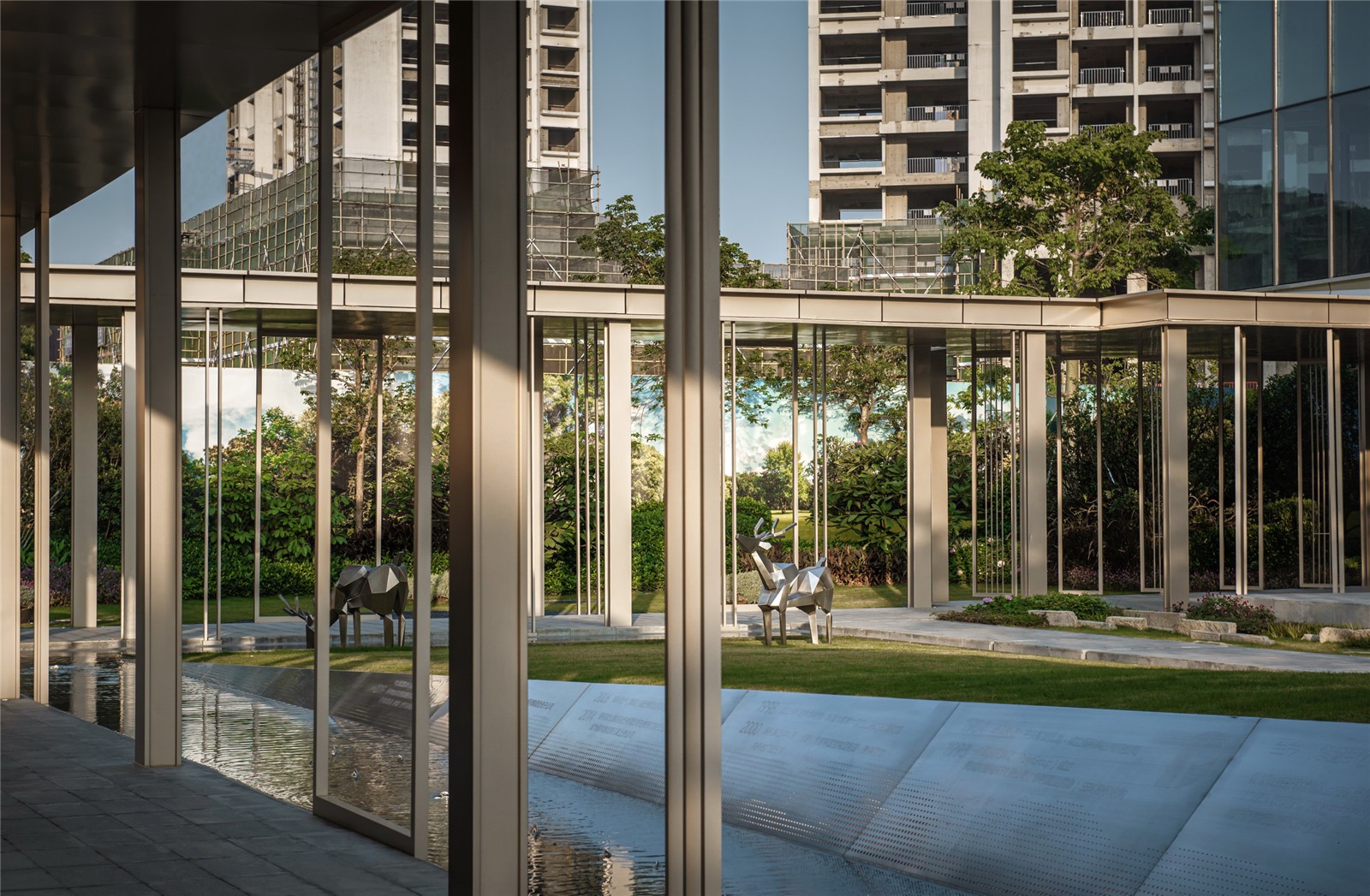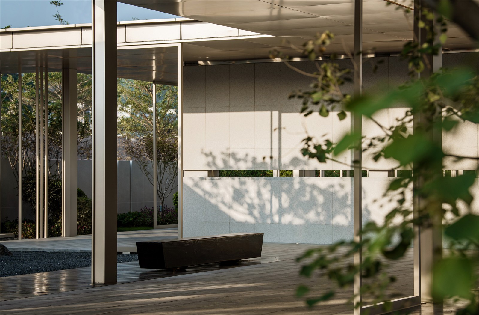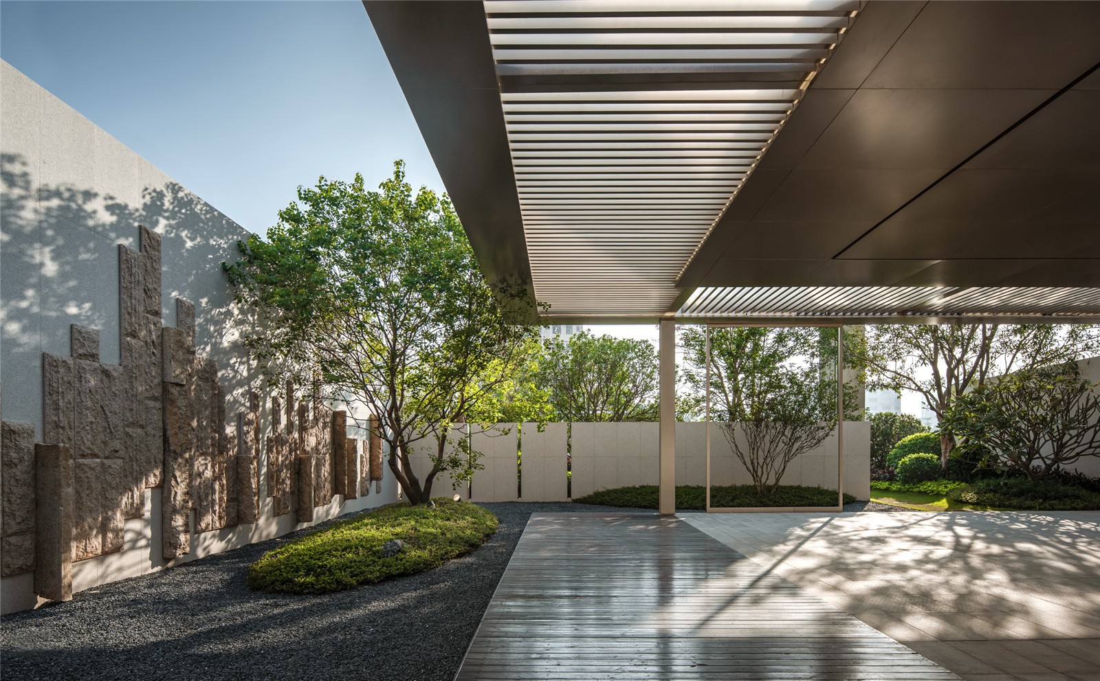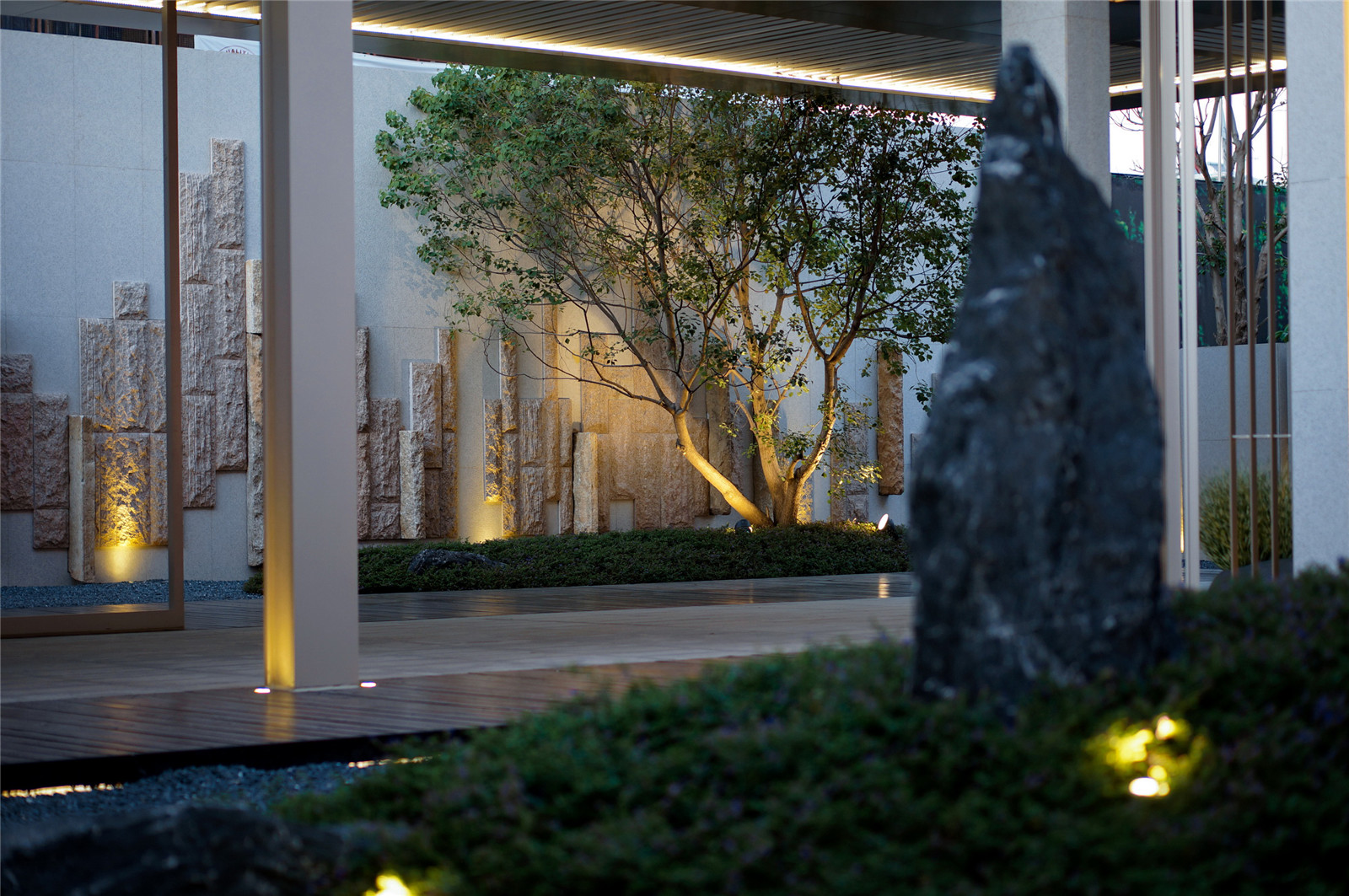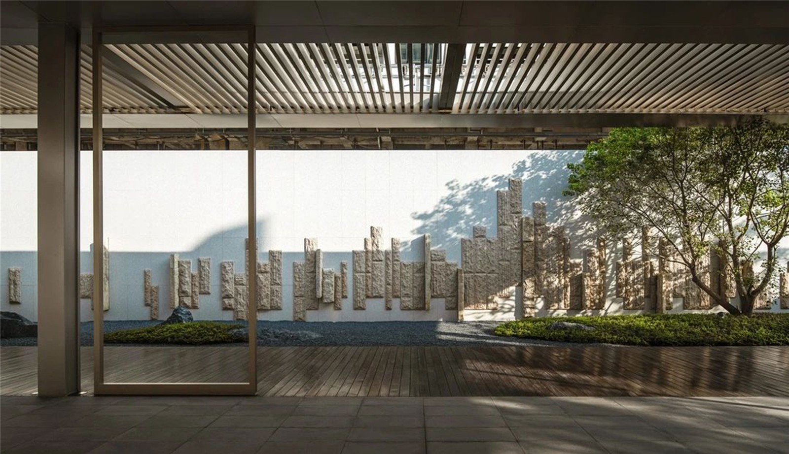 這種連接室內(nèi)外的景觀意境,主要講究“觀”與“享”的營造。透過售樓中心的落地窗,參觀者的視線即可接收到窗外景觀所傳達(dá)的別致、情趣。