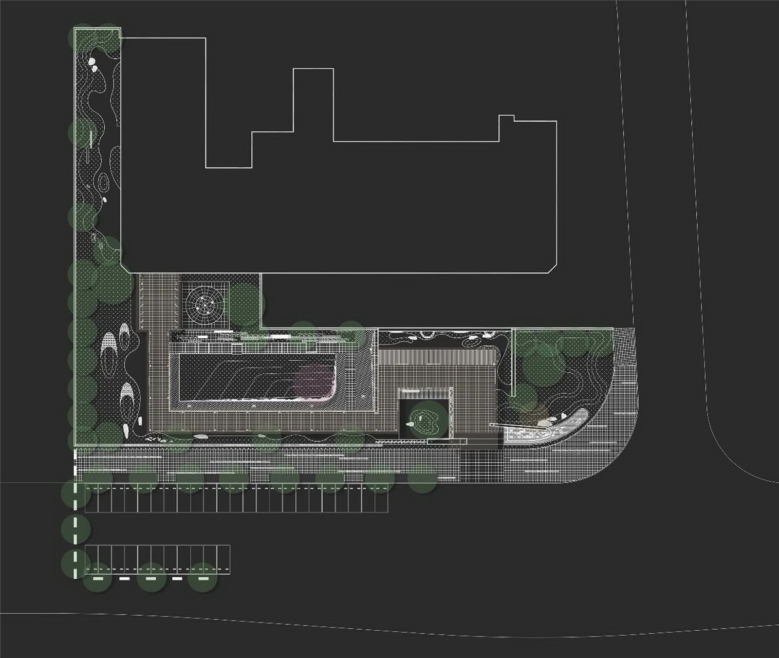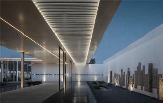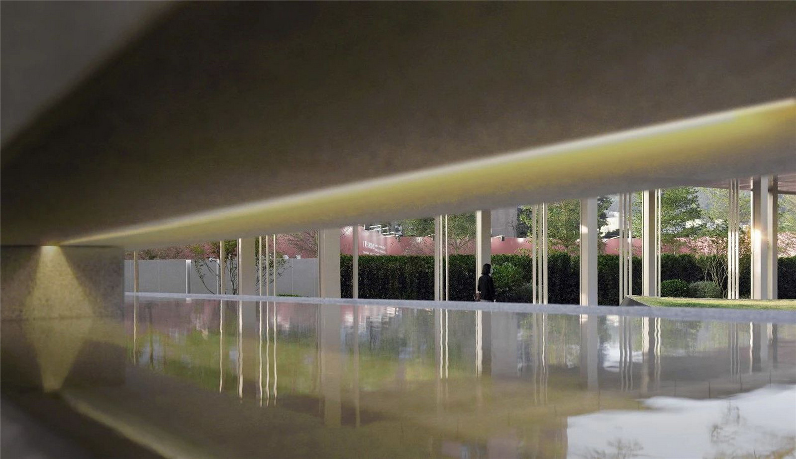 端頭的流水景墻,又一次創(chuàng)造人與人、人與空間、空間與時(shí)間的隔離與交叉感,述說著突破空間緯度的思維遐想。