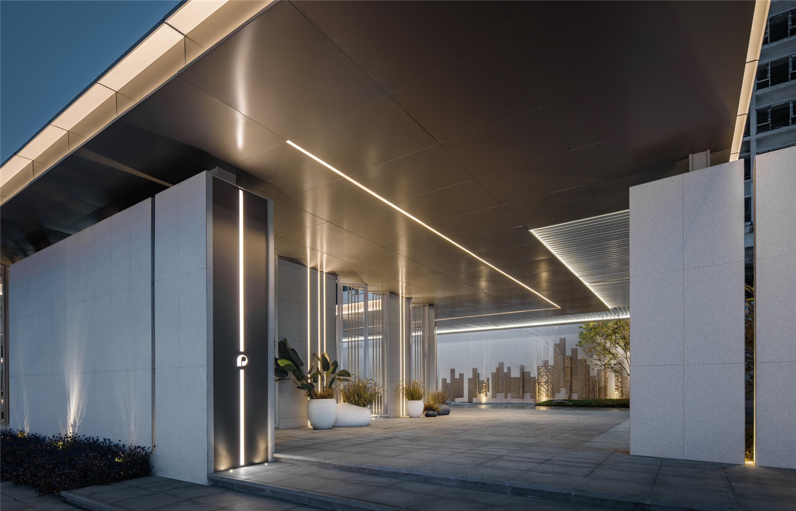 保利勤誠達(dá)譽(yù)都花園展示區(qū)的設(shè)計(jì)充分利用了光與空間的構(gòu)成,每一道光影都有它呈現(xiàn)的考量。當(dāng)行人沿著指示走近項(xiàng)目,先是沿途的風(fēng)景小叩心扉,而微小的入口LOGO標(biāo)識嵌入設(shè)計(jì)給予了空間一種引導(dǎo)性、銜接性和豐富性,暗示著保利的品質(zhì)護(hù)航。