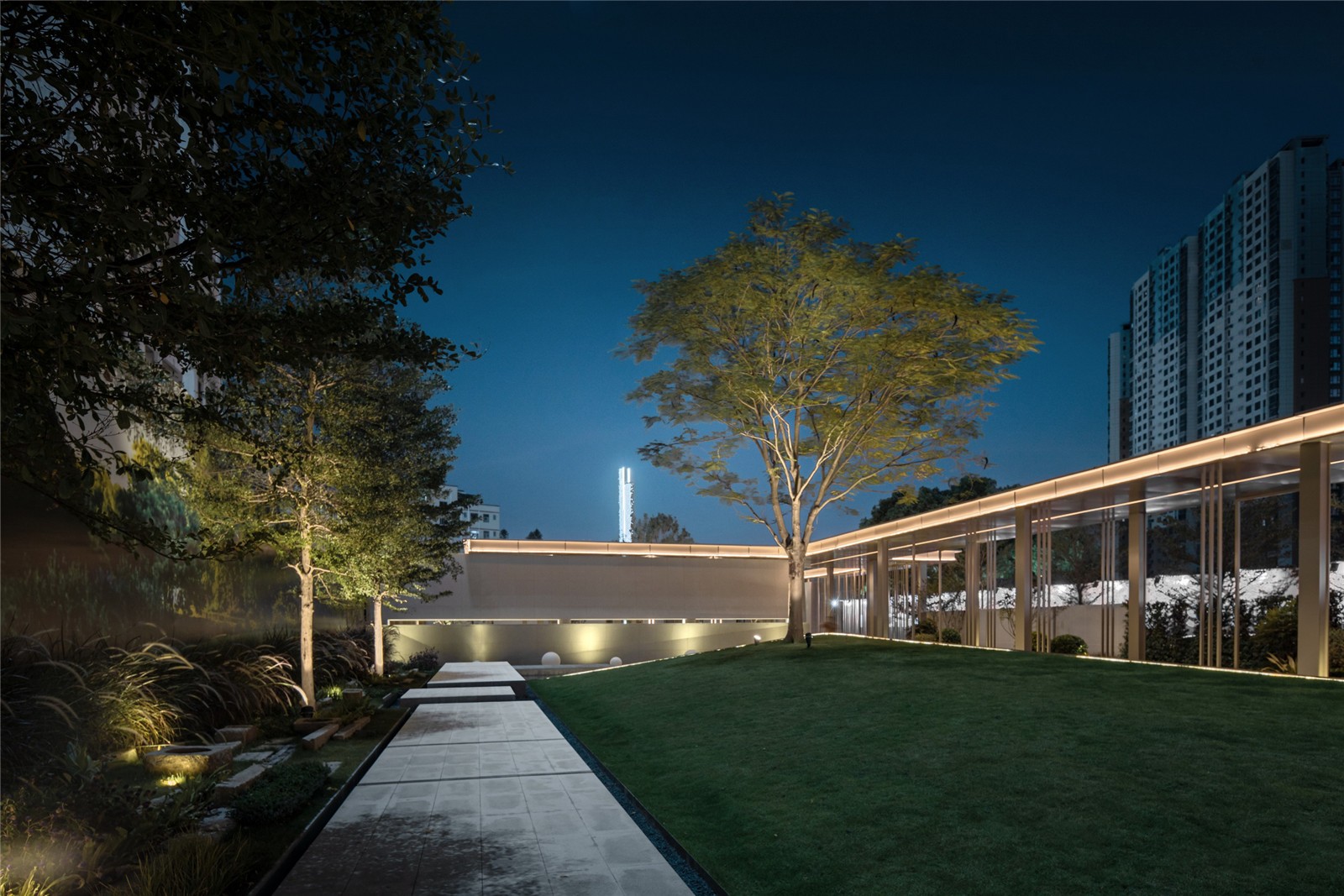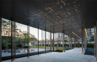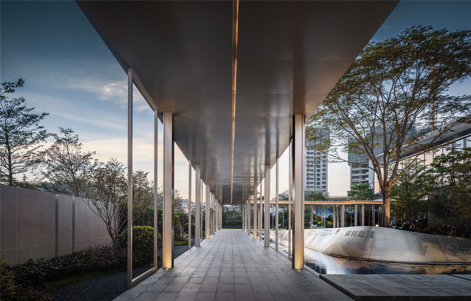 保利勤誠達(dá)譽(yù)都花園展示區(qū)除了滿足甲方對售樓營銷的商業(yè)需求,希望能擁有更多城市生活的藝術(shù)性,將售樓示范這種功能性場所設(shè)計(jì)為城市藝術(shù)展廳,為到訪者提供一個(gè)集建筑空間、景觀藝術(shù)和培養(yǎng)社區(qū)幸福感于一身的綠色庇護(hù)所。