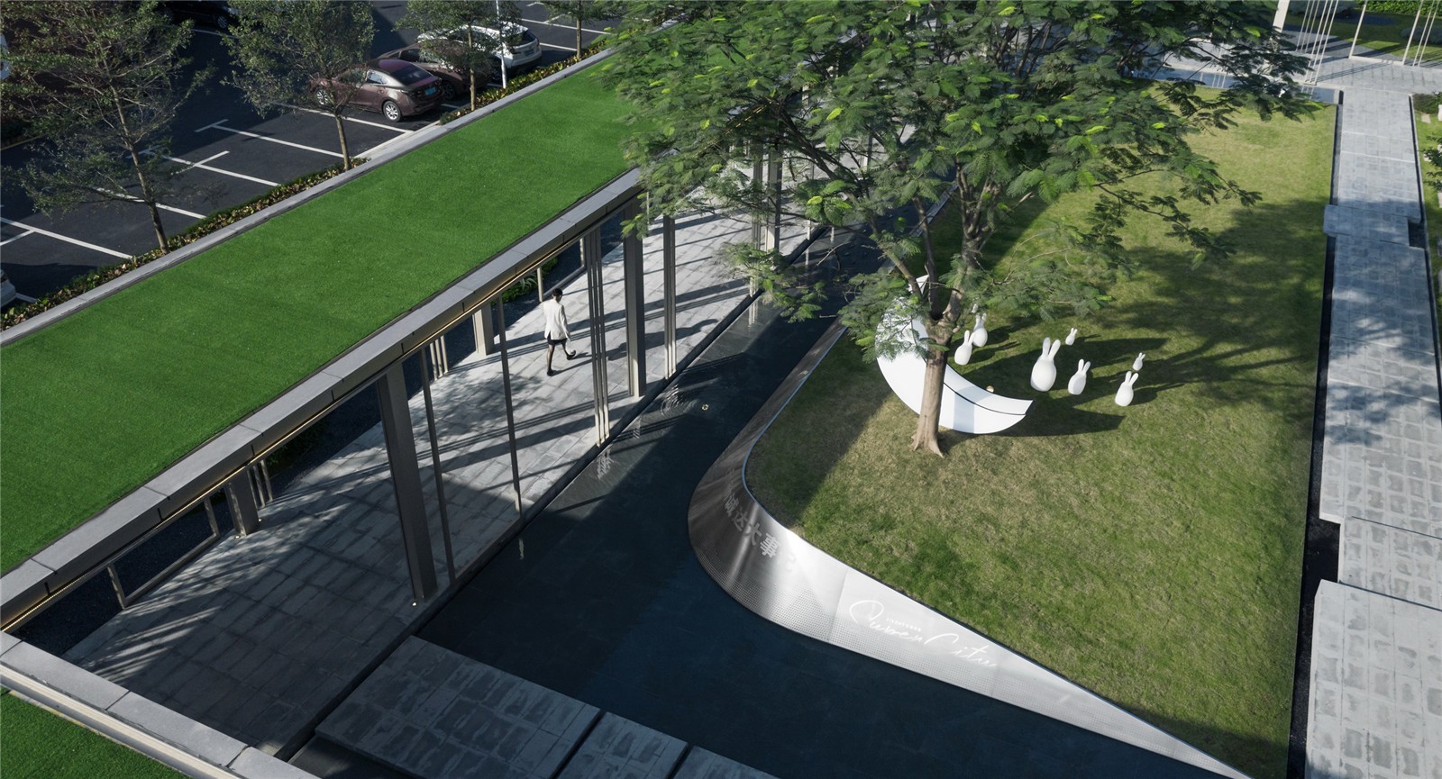 ▲項(xiàng)目售樓中心前場藝術(shù)地景