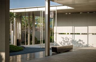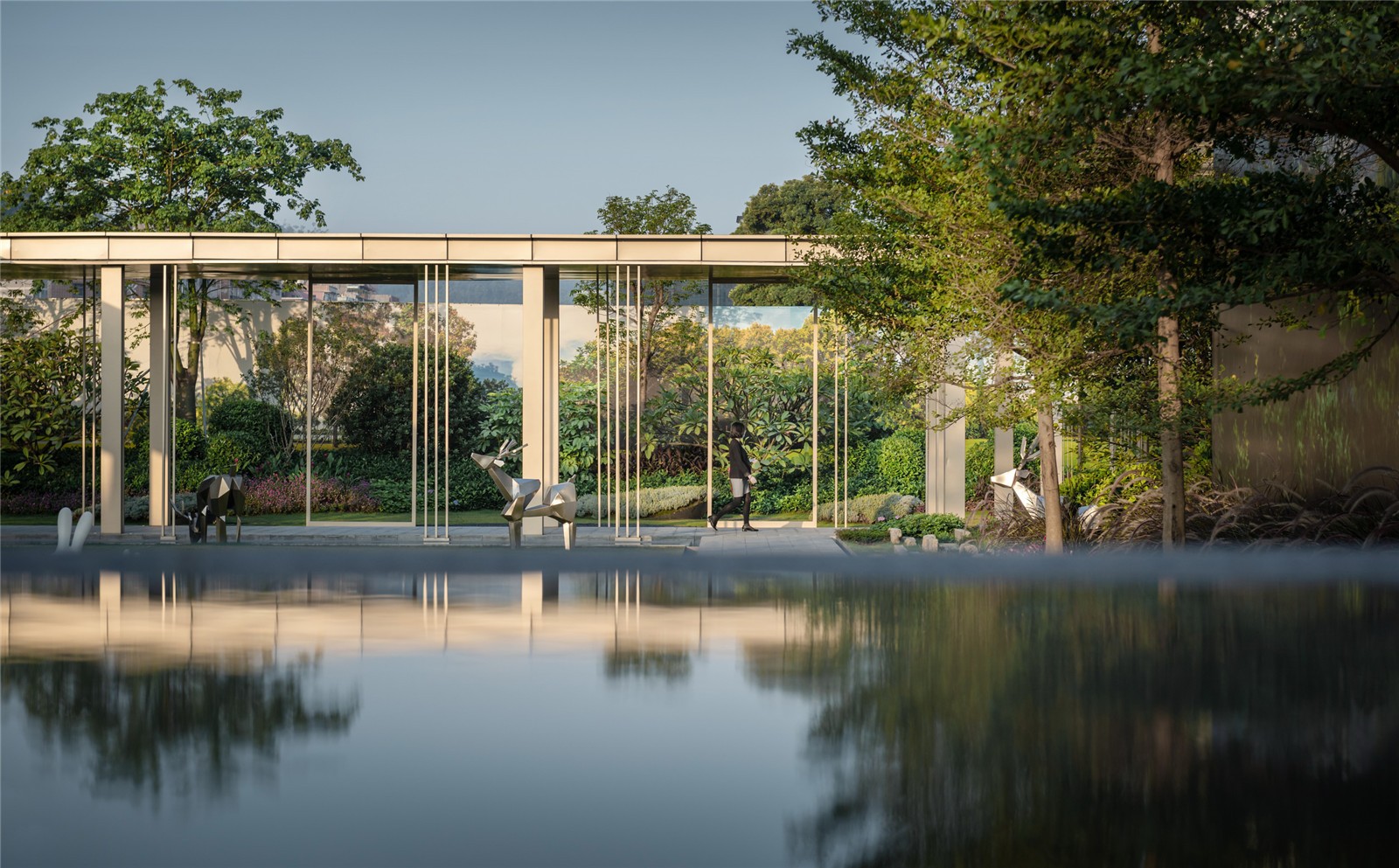 走入時(shí)光長廊,開朗通透、輕巧自如。水面環(huán)繞,將天光樹影倒映于水面,外部望不到的所有景致,都在這里不加收斂地呈現(xiàn)。