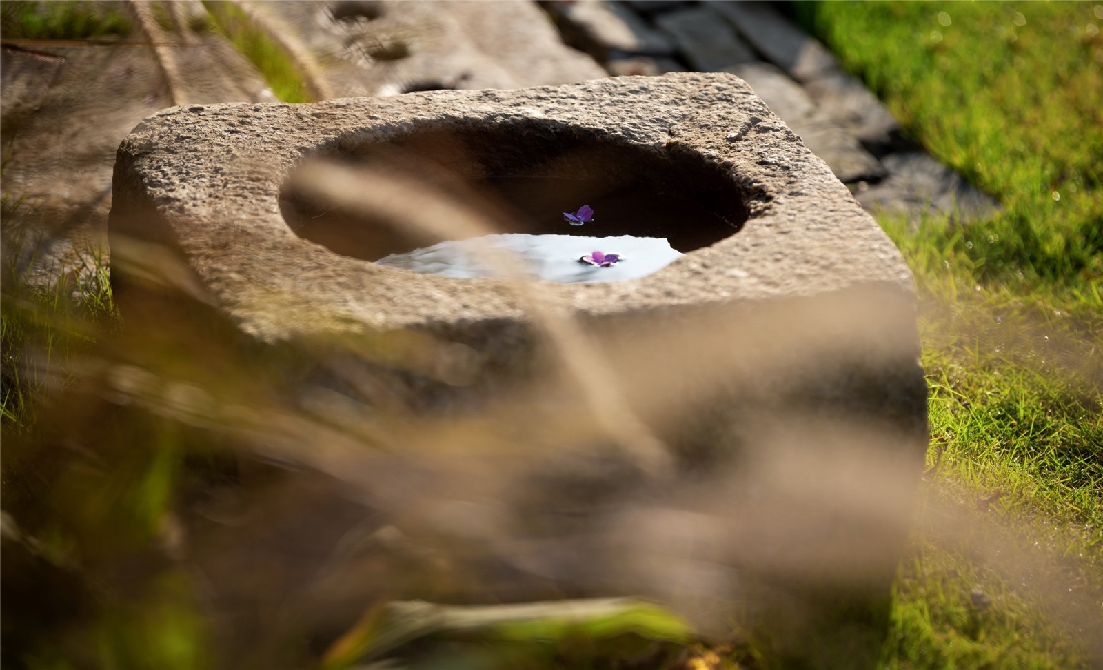 很多的客家民居前都有一個(gè)半圓形的“池塘”,遠(yuǎn)遠(yuǎn)看去就像是倒映在地面上的半月,被視為客家人的“風(fēng)水塘”。他們認(rèn)為“塘之蓄水,足以蔭地脈,養(yǎng)真氣”,故養(yǎng)人蓄財(cái)寓意。民居庭院還放有圓形老石槽,種花養(yǎng)魚,是古老技藝的精粹。