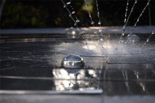 時(shí)光長廊的另一側(cè),是以水景為面的汀步,高低錯(cuò)落,為行人帶來不一樣的步行體驗(yàn)感。