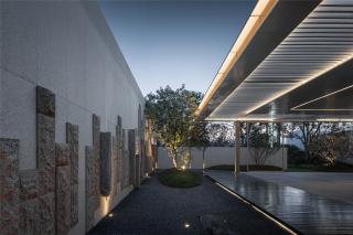 SED新西林以白色為主色調(diào),主張“少即是多”的極簡設(shè)計(jì)理念,通過刻槽、燈光的細(xì)節(jié)處理,消除極簡設(shè)計(jì)所帶來的單調(diào)。礫石和草坡地形加深沉靜的空間氛圍,斑駁的石墻刻畫出光陰的印記,增強(qiáng)了時(shí)光歷史的厚實(shí)感。