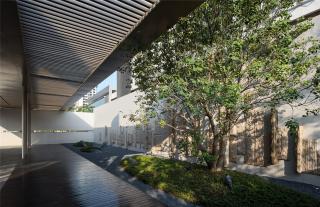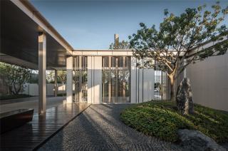 從精心設(shè)計(jì)的入口序列,到內(nèi)外空間的相互滲透,再到建筑材料的使用、光影間的互動,項(xiàng)目始終呈現(xiàn)一種極簡的設(shè)計(jì)美學(xué),這些都是客家民居賦予的靈感。