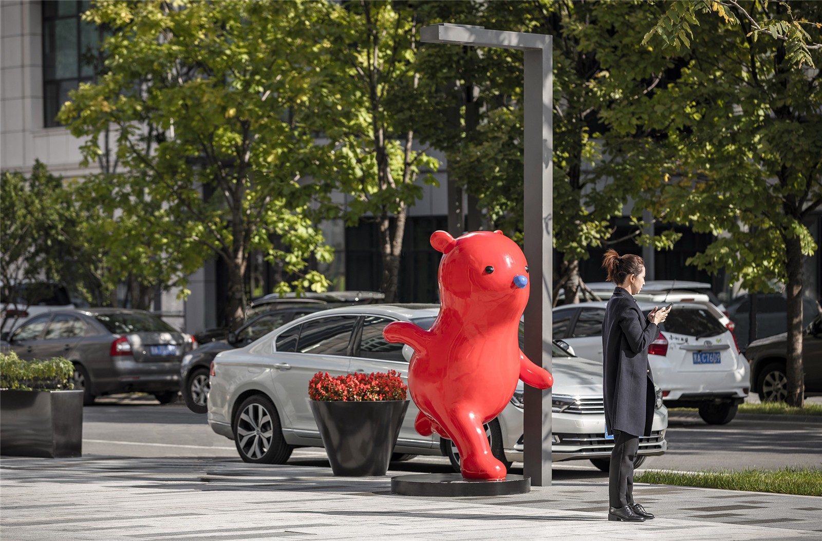 紅色的小熊形象都憨態(tài)可掬,詼諧卻不滑稽,圓圓滾滾的“大塊頭”,溫潤細(xì)膩、活潑可愛,作品傳遞出愛與溫暖。
