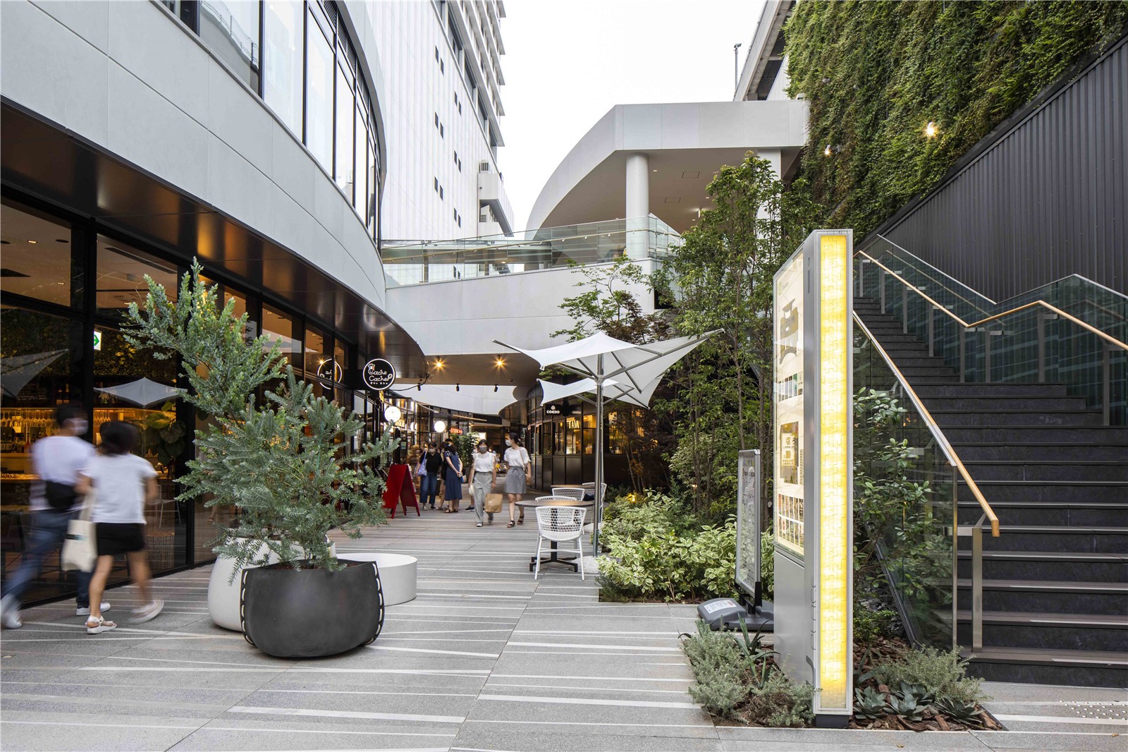 景觀氛圍自然含蓄,舒適宜人,結(jié)合社交距離對戶外空間加以靈活利用,使U-PLACE充滿活力,門庭若市。