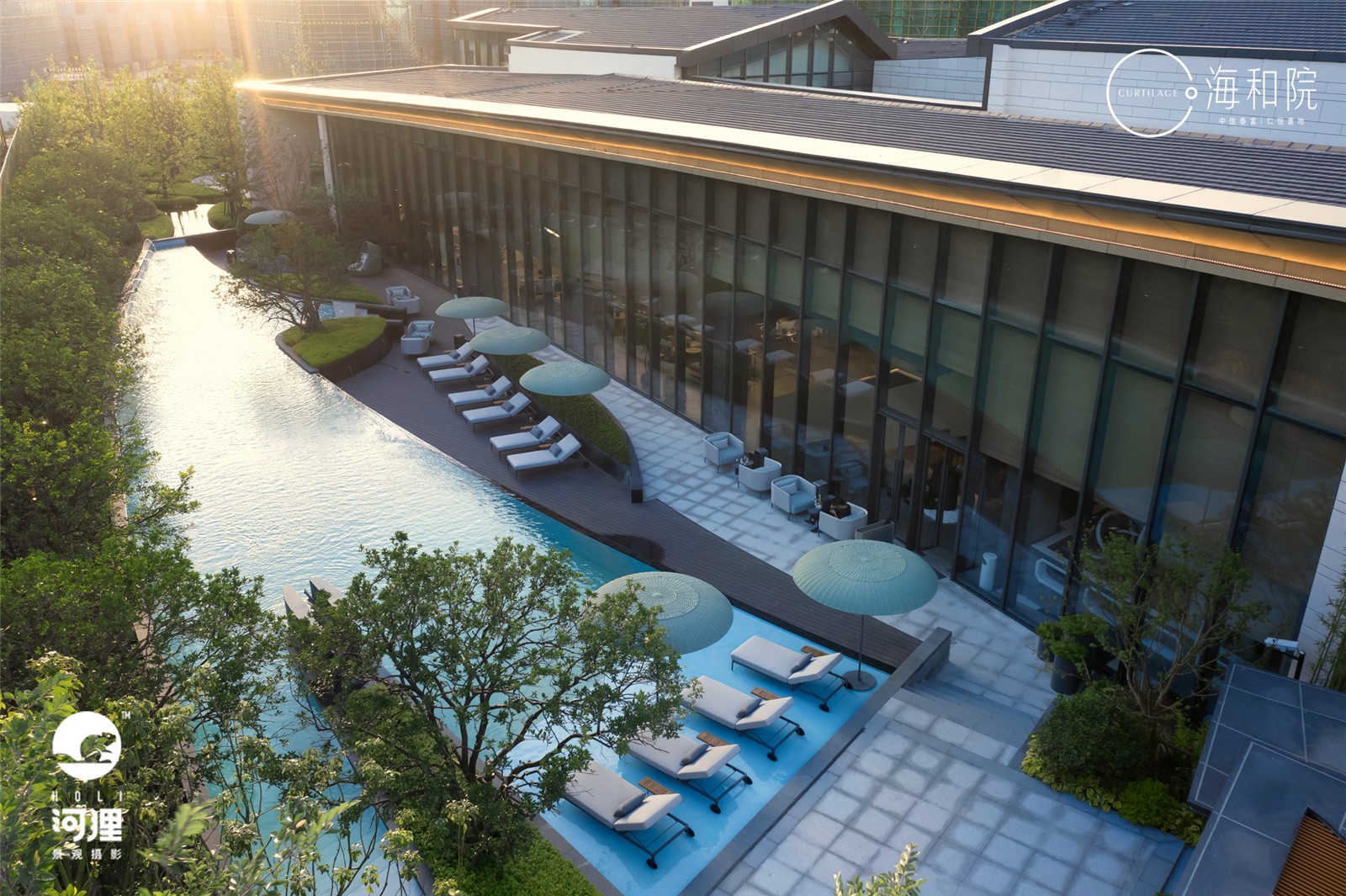 泳池作為售樓處的點(diǎn)睛之處,延伸建筑的曲線,嵌合在建筑的玻璃幕墻外,渾然一體,泳池的設(shè)計(jì)考慮不同年齡段的使用需求,為每個(gè)家庭提供了互動的空間。