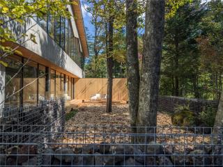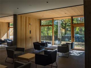 本項(xiàng)目是以“與愛犬共住”為主題的度假酒店。在設(shè)計(jì)理念“共享空間”的基礎(chǔ)上,項(xiàng)目規(guī)劃與輕井澤的自然風(fēng)景相融合,盡可能使周邊生物也可靠近。為了使富有特色的建筑能夠完全溶入輕井澤的風(fēng)景之中,使用了輕井澤具有代表性的植物,采用當(dāng)?shù)氐氖?。雖然剛竣工,但酒店看起來仿佛數(shù)年前就已存在。