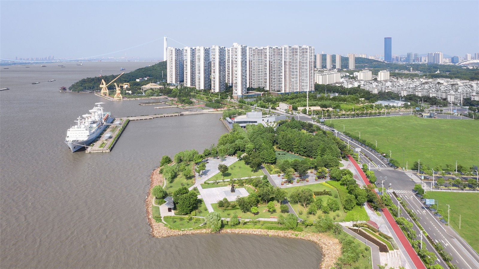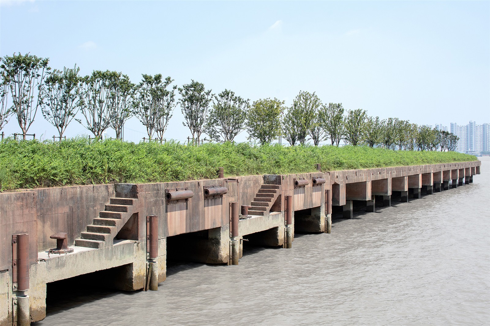 發(fā)達(dá)的水運(yùn)和便于儲(chǔ)存貨物的開(kāi)闊平坦地勢(shì)使這片江邊碼頭成為天然港口區(qū),不過(guò)在改革開(kāi)放后,碼頭東面曾建造為設(shè)施齊全的船廠。如今的設(shè)計(jì)不僅保留了該區(qū)域的歷史痕跡,還從生態(tài)、流線及規(guī)劃等層面對(duì)其進(jìn)行了提升。最終呈現(xiàn)的結(jié)果便是一份當(dāng)?shù)貧v史與環(huán)境的復(fù)雜重寫(xiě)本,容納各式公共空間并支持兼收并蓄、多種多樣的戶外活動(dòng)。