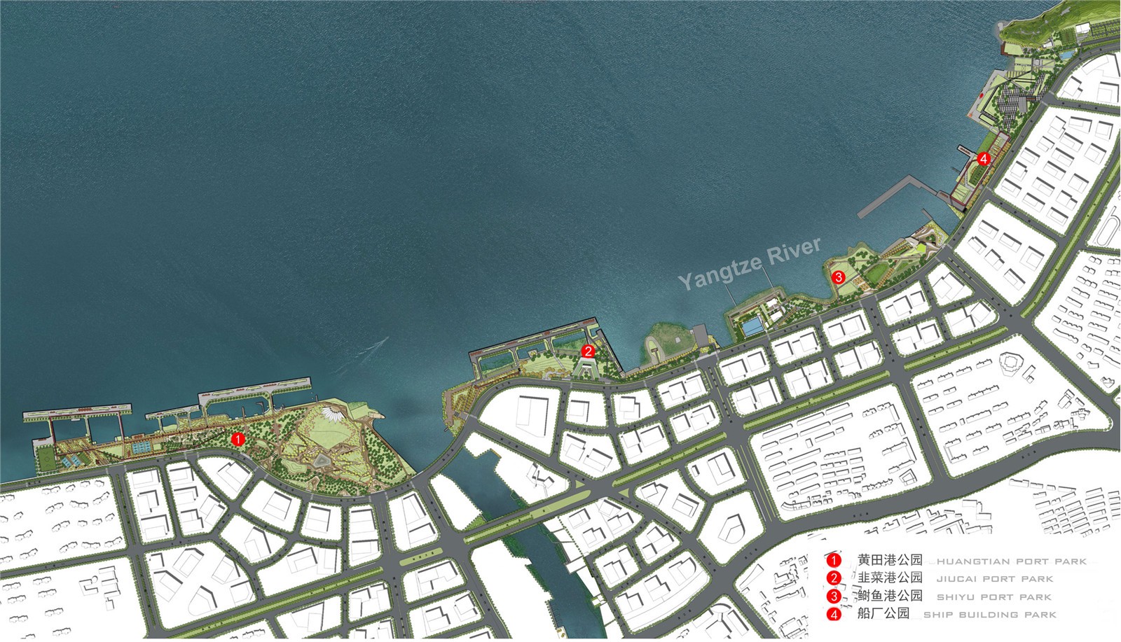 Construction Cost: RMB 369 million (Ship Building Park RMB 30 million; Shiyu Port Park RMB 59 million; Jiucai Port Park RMB 70 million; Huangtian Port Park RMB 210 million)