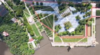 Program: Sustainable urban drainage, city garden, wetland, parkland, heritage preservation, plazas, emergency docks, skate park adventure playground, tennis courts, basketball courts, gate ball courts, table tennis courts, soccer fields, outdoor swimming pool, outdoor theater, bike paths, running track, pavilions, commercial and amenities buildings and tourist information centers.