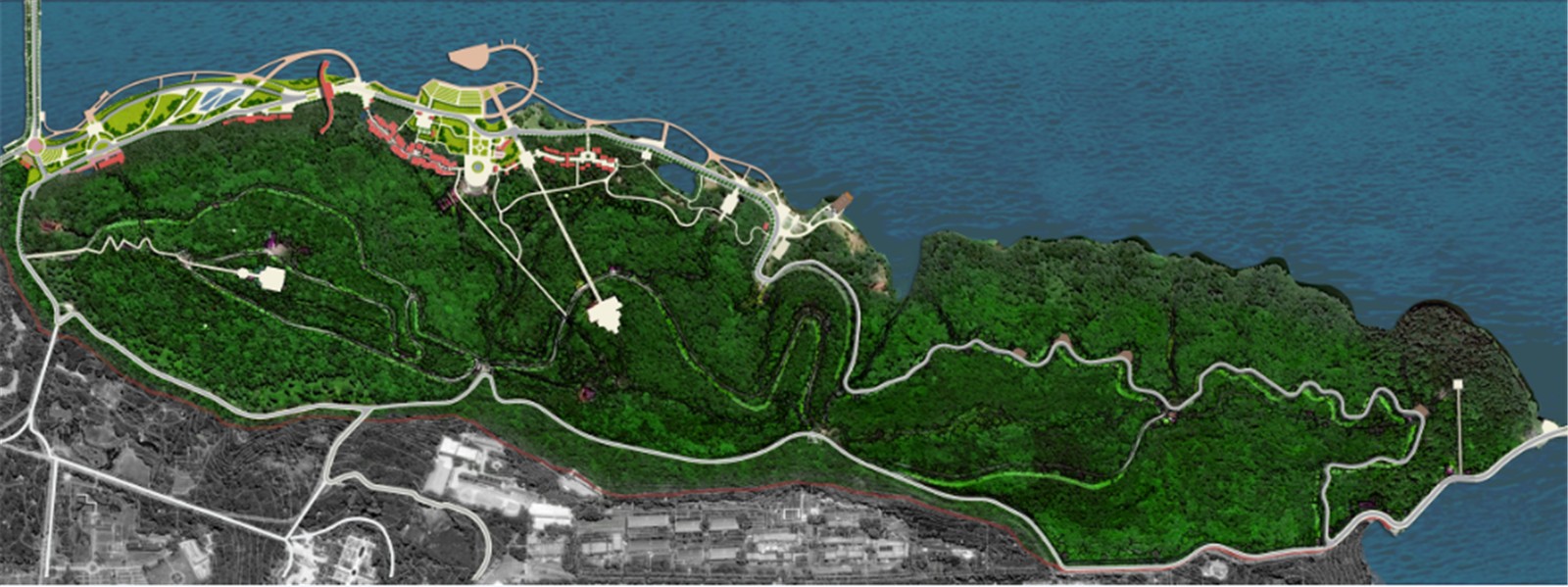 同時,結(jié)合磨山原有景觀資源和道路,盡量保留人們歷史的記憶,以完善提升為特色,著力于塑造高層次、高品質(zhì)、高品味的景觀空間,打造多樣性綠道體驗(yàn),為市民提供更舒適的城市公共空間,旨在將單一性的公園景區(qū)改造成為多功能的市民活動中心。