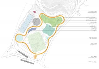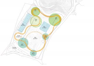 The topography of the site follows the north-east side of the hill, down the trend, the maximum difference of the level is about 15 meters, which can be used to shape the terrain. Designers want to be able to create three-dimensional activity spaces: Firstly, combined with the difference of the levels, the outdoor activities need all kinds of places, all-age activity areas and children’s activity areas and other places for the layout; Secondly, the jogging runway is used to connect the various venues in series to strengthen the link of outdoor sport.