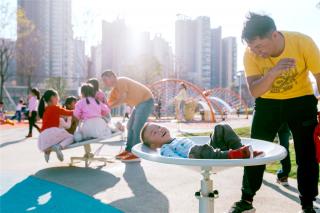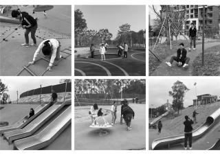 ▲設(shè)計師親身測試活動器械 The designer personally tests the equipment