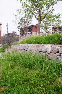 半山腰下的景觀空間,我們不想打斷大型活動場地與半山自然生態(tài)景觀的聯(lián)系,用簡單自然的景觀手法,通過植物和靈活排布的場地與綠化空間融合,例如一些毛石材料,弧線種植空間,環(huán)抱的林蔭空間,通過細節(jié)設(shè)計把人們帶進被自然擁抱的空間里。