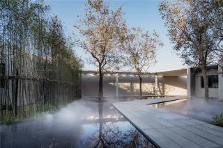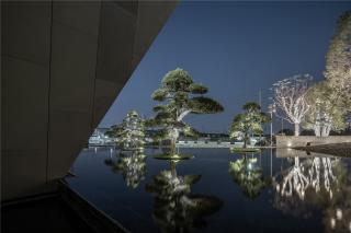The frontcourt maximizes the representation and simulation of nature. A mirror-like pond is portrayed in the artistic context and placed on the site. Walking in it, you may feel like strolling in a flowing world. Appearing in the architectural form, it reflects the scene of conquering the unyielding with the yielding and harmonious coexistence. In the mirror-like pond, designers connect all lights into a painting of the starry sky. When darkness falls, it seems as if one has entered the Milky Way.