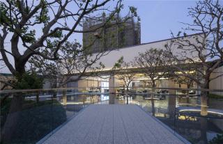 The design rearranges and integrates the forms and rhythm of the space. As the sightseeing proceeds, the space rhythm now speeds up, now slows down. The architecture and the landscape court are organically combined to create distinctive scenes as one walks.