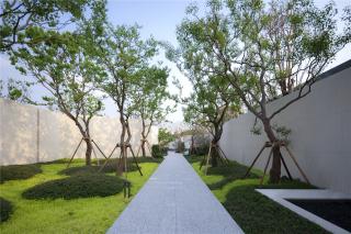 Walking to the deep end of the flowery path with a dreamy feel, you can find the way zigzag forward. Surrounding it is a scenery wall that extends in an exquisitely designed angle to divide the space, shield noises, and keep tranquility.