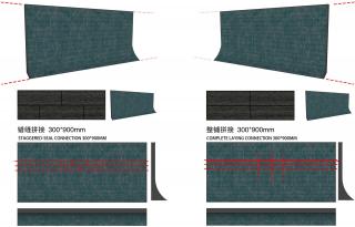 △流水板鋪裝方式考慮到整鋪拼接過程中,石材批次、現(xiàn)場(chǎng)施工難以控制,拼接過程中可能出現(xiàn)縫隙較大,銜接瑕疵,故采用錯(cuò)縫拼接,最大完美展現(xiàn)流水板的整體效果。Drainboards are laid with consideration to the following problem: The stones are of different categories, which make it difficult to control on-site construction and may result in wide seals and defects in the connection process. Therefore, the staggered-seal connection is chosen to maximize drainboards’ overall effects.
