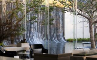 策略:內(nèi)向型空間的設(shè)計(jì)手法,橫向70米的城市界面打造??臻g層層遞進(jìn),通過植物造景。玻璃磚、風(fēng)動(dòng)幕墻、流水板不同材料的景觀融合也會(huì)有新的發(fā)現(xiàn)。
