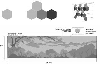 值得一提的是技術(shù)與藝術(shù)完美結(jié)合的風(fēng)動(dòng)幕墻,以宋代水墨畫為藍(lán)本,借鑒日本狩野派屏障畫的構(gòu)圖特色,這種畫面空間不被邊界局限的構(gòu)圖手法,暗示出空間的擴(kuò)張性和連續(xù)性。
