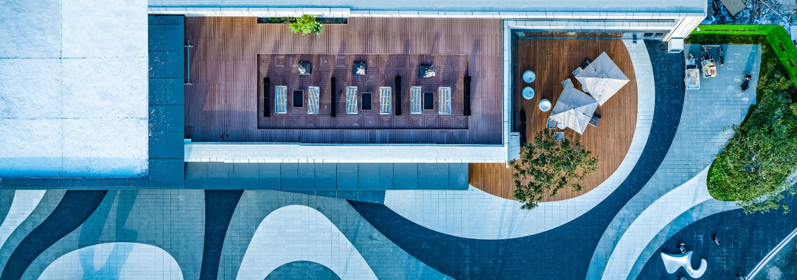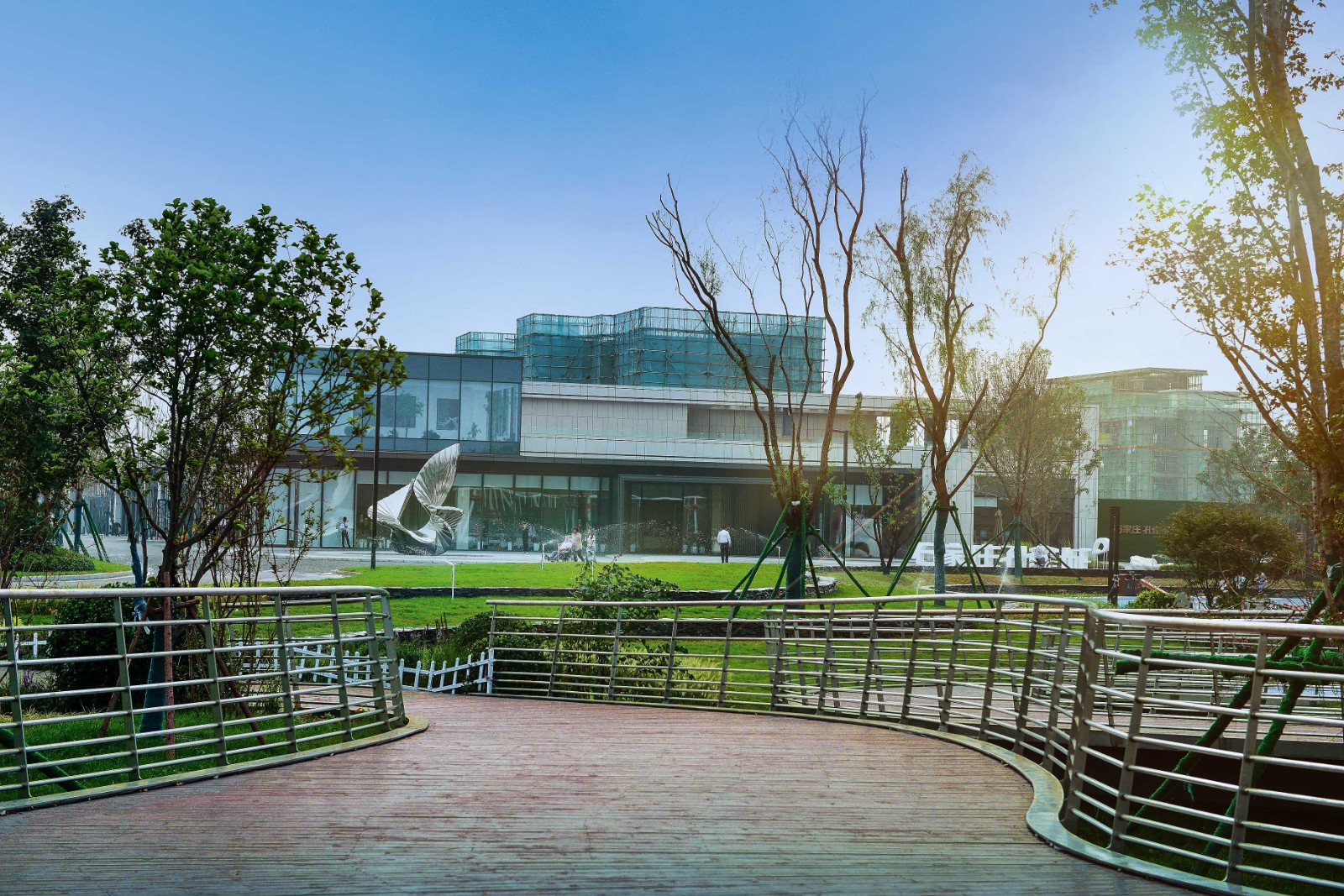 U型回環(huán)的浪漫廊橋,用形狀譜寫主樂章的起始的精彩。你在橋上看風(fēng)景,看風(fēng)景的人在橋下看你。遠(yuǎn)望青山近看綠水,是生活的恣意和瀟灑。
