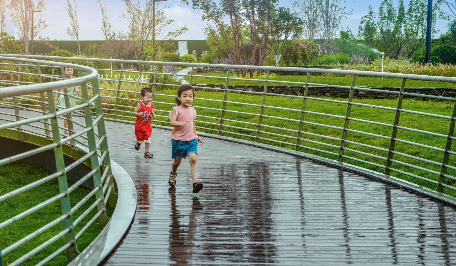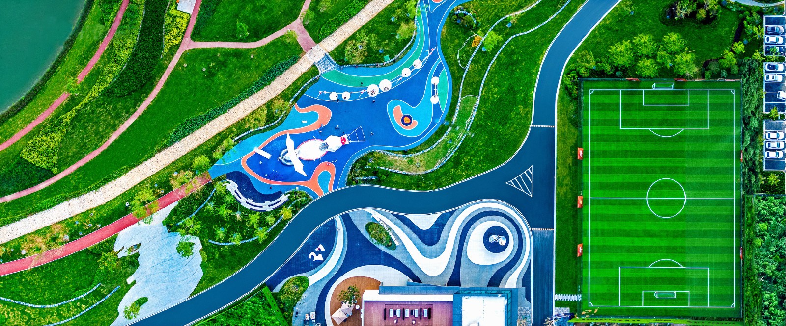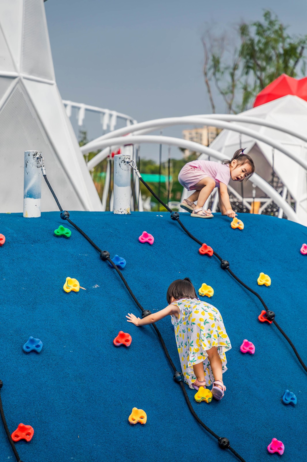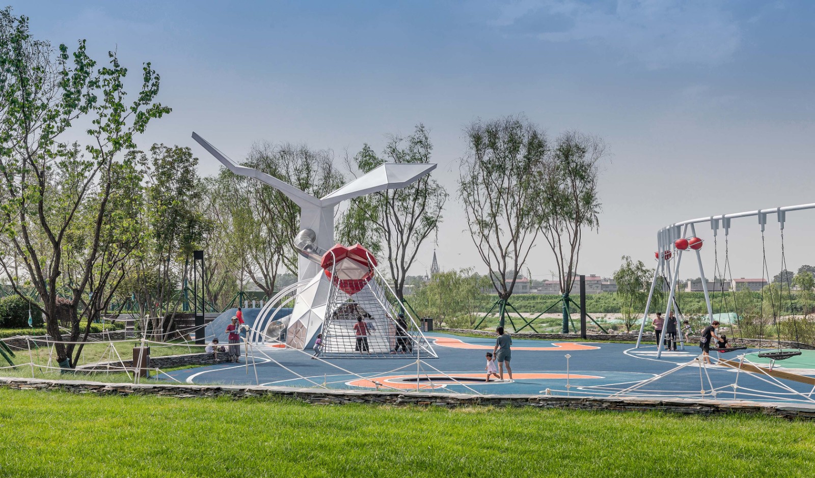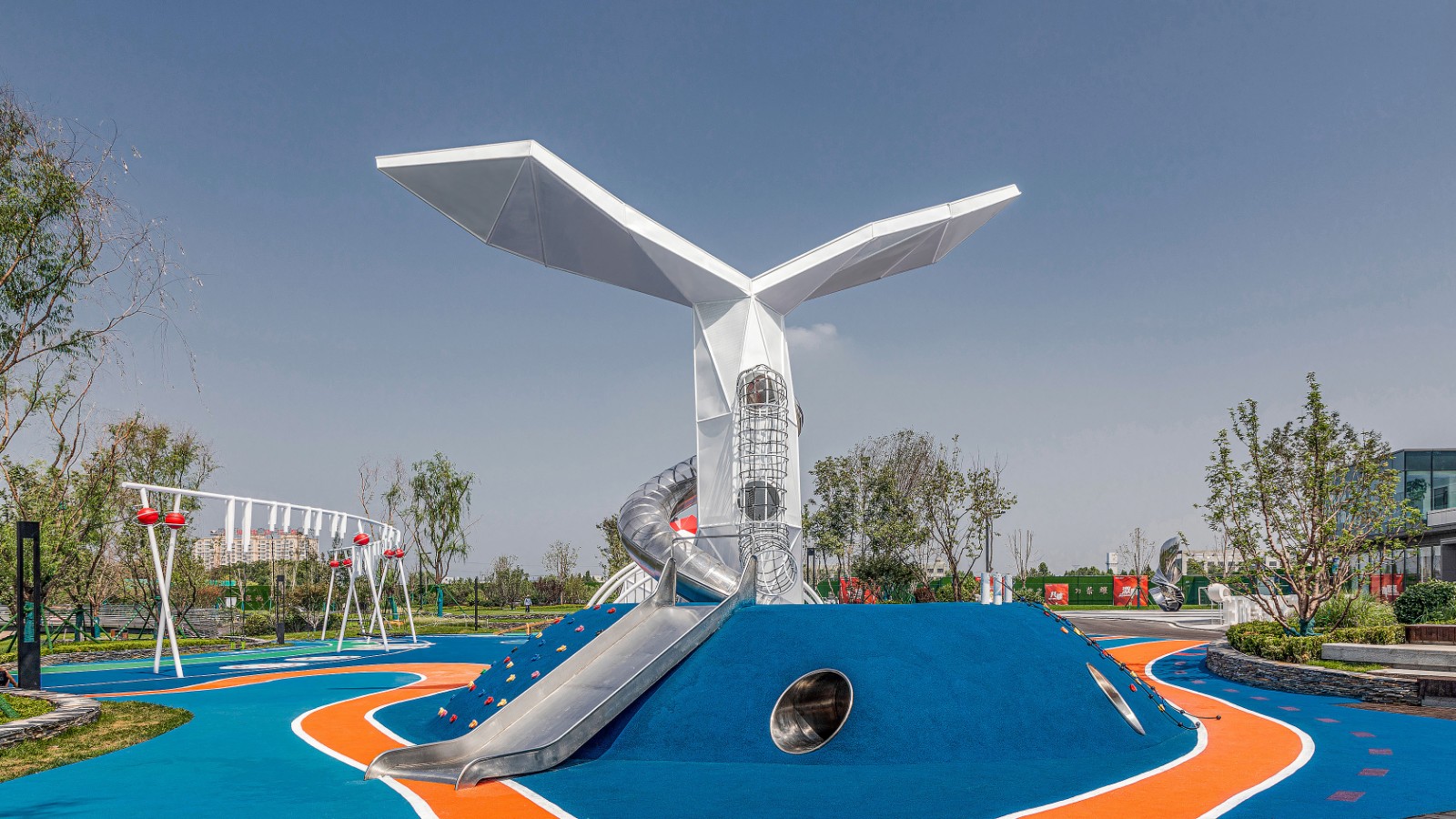 不同年齡段的孩子在這里都能找到他最愛的空間,盡情玩耍嬉鬧。就像鯉魚那出水一躍,就像緩緩散開的波紋曲線,歡樂而又流暢的音樂在這里響起。