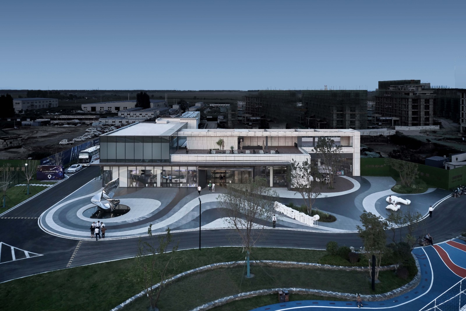 這個項目是市政濱河公園和永久性示范區(qū)的結(jié)合,又在河道邊上具有高差,所以要求整個空間與現(xiàn)場地形及周邊環(huán)境匹配,達(dá)到“行云流水”。在項目過程中我們多次結(jié)合案例、模型、現(xiàn)場條件以及客戶要求進(jìn)行思考和反復(fù)推敲,以得到適合場地的最優(yōu)解,讓一些在其他項目中只作為“通過性空間”的地方在這里變成“功能性空間”,從而賦予空間實(shí)際的意義和價值。同時我們還將一些材料規(guī)格,樣式和顏色等的設(shè)計步驟前置,預(yù)留更多的時間讓項目契合場地,使得它更加唯一而融入場地精神。