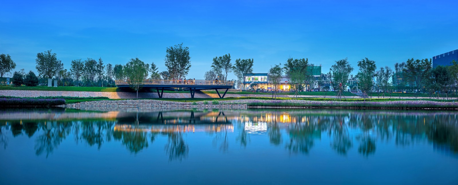 橋,把人從陸地帶到半空,帶到河岸之上,帶到自然的空間之中。親水度和體驗感隨著視線的提升而增加,使用者身在場地內(nèi),卻可以用更加開闊的視野眺望沙河。