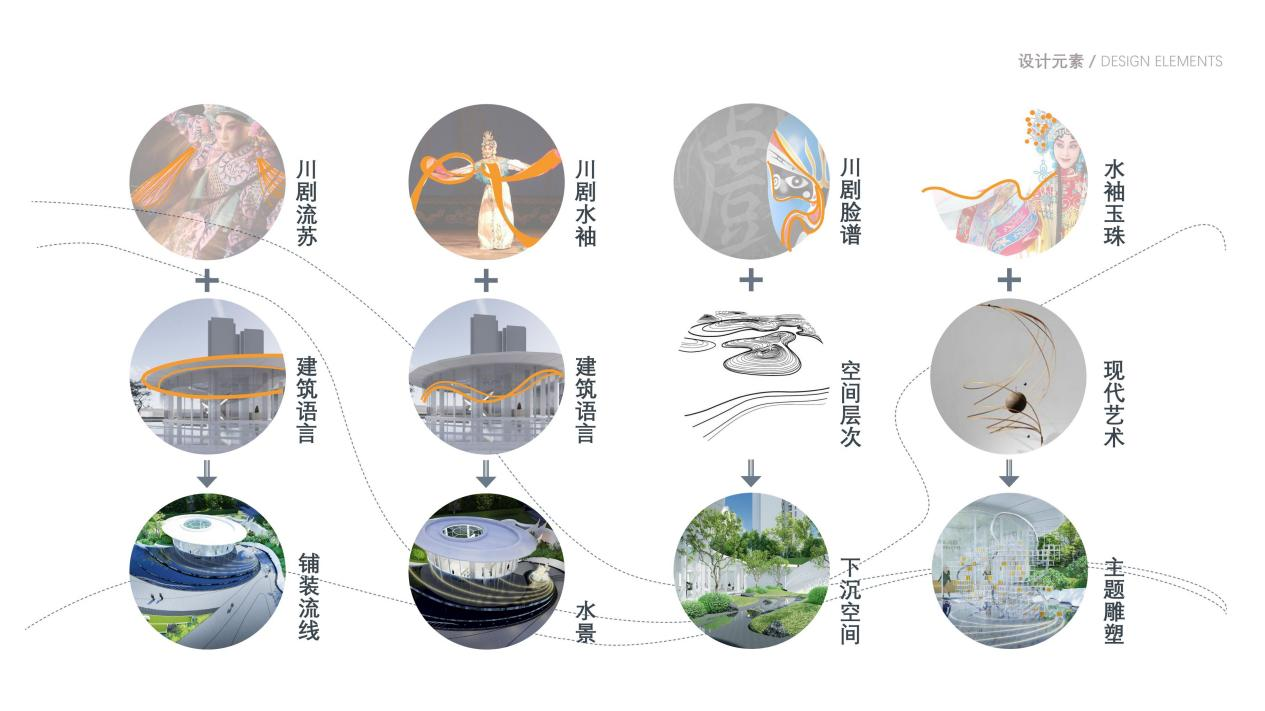 以傳統(tǒng)川劇中的臉譜、水袖等設(shè)計(jì)元素結(jié)合現(xiàn)代科技中的光影表達(dá),賦能未來空間色彩上更多的文化內(nèi)蘊(yùn)。