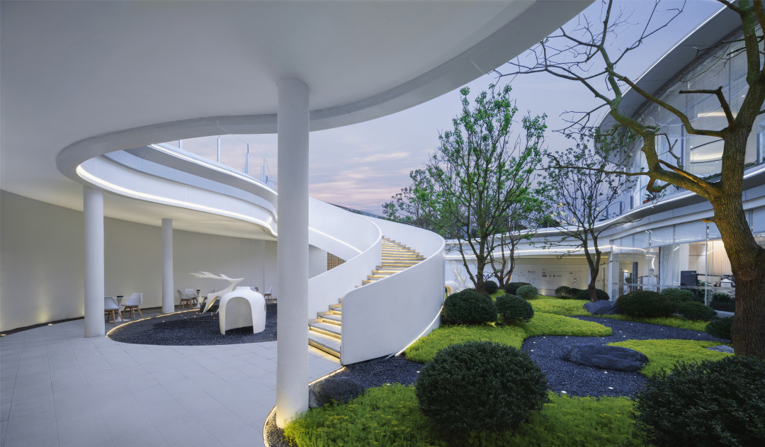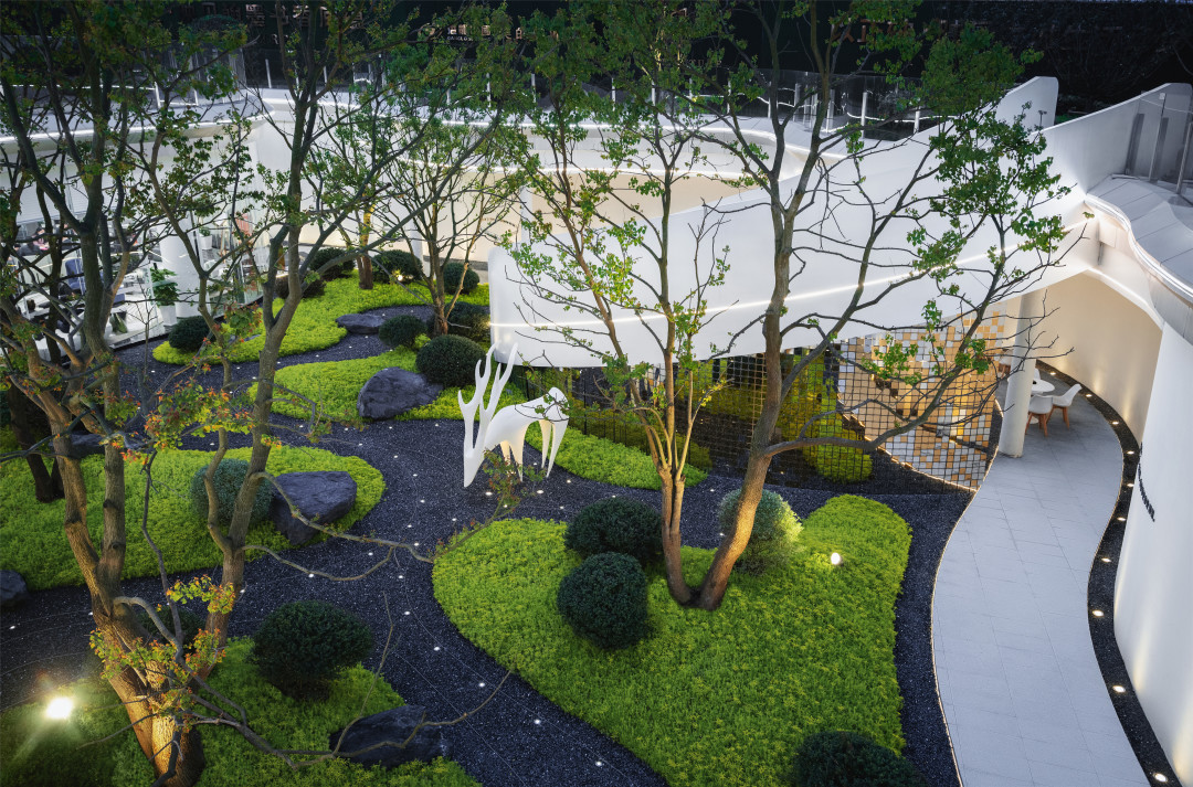 Dissolve the boundary, artful dynamic string. The landscape design echoes the design elements and texture of the soft and flowing curved lines of the building and interior, so that architecture, landscape and interior design are presented without boundaries.