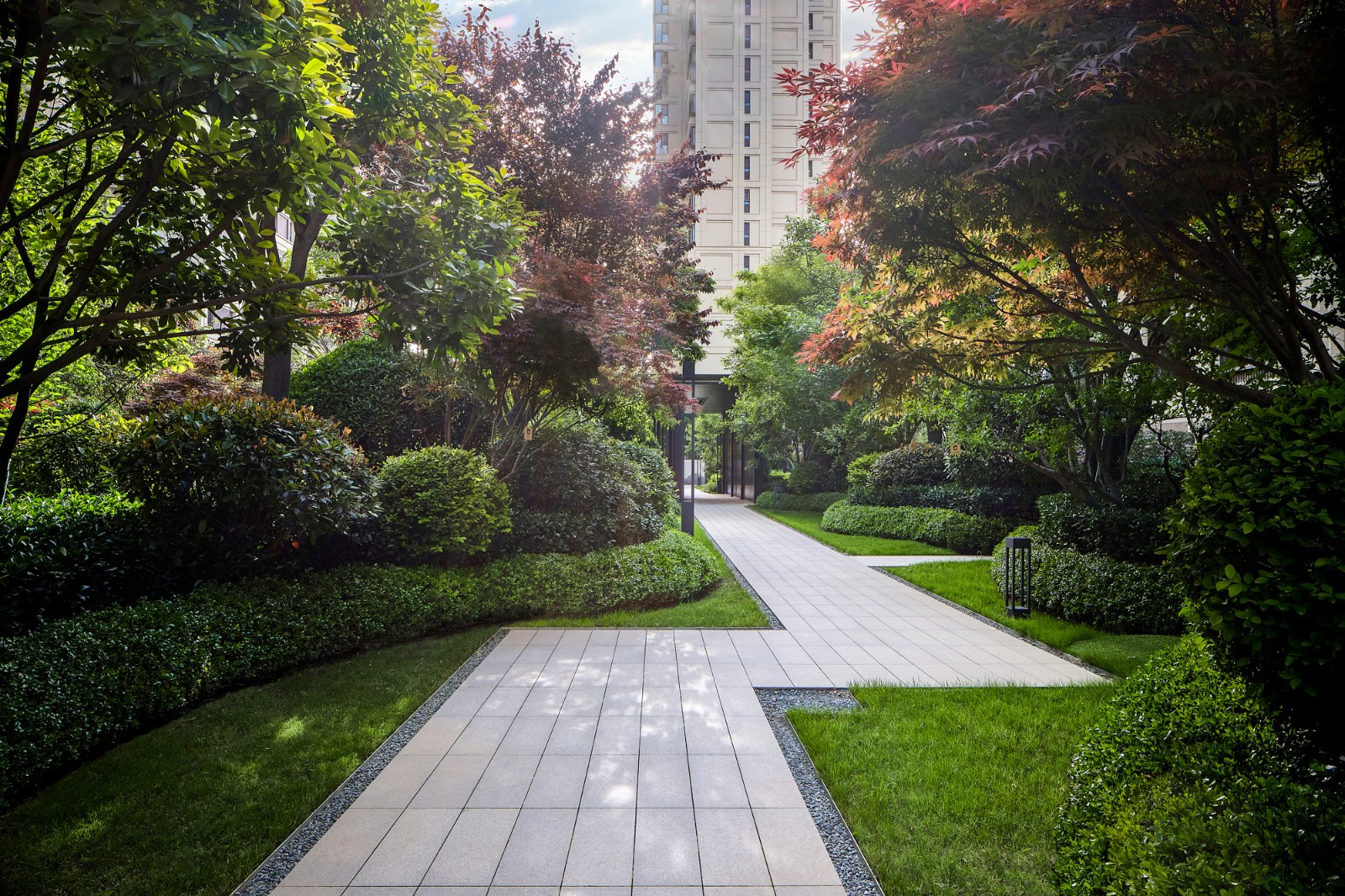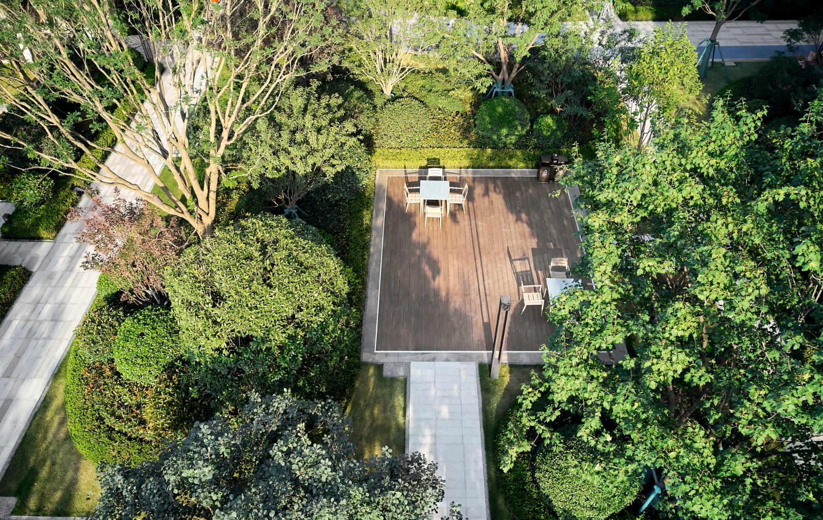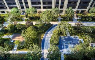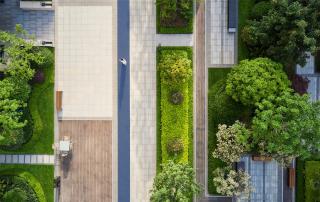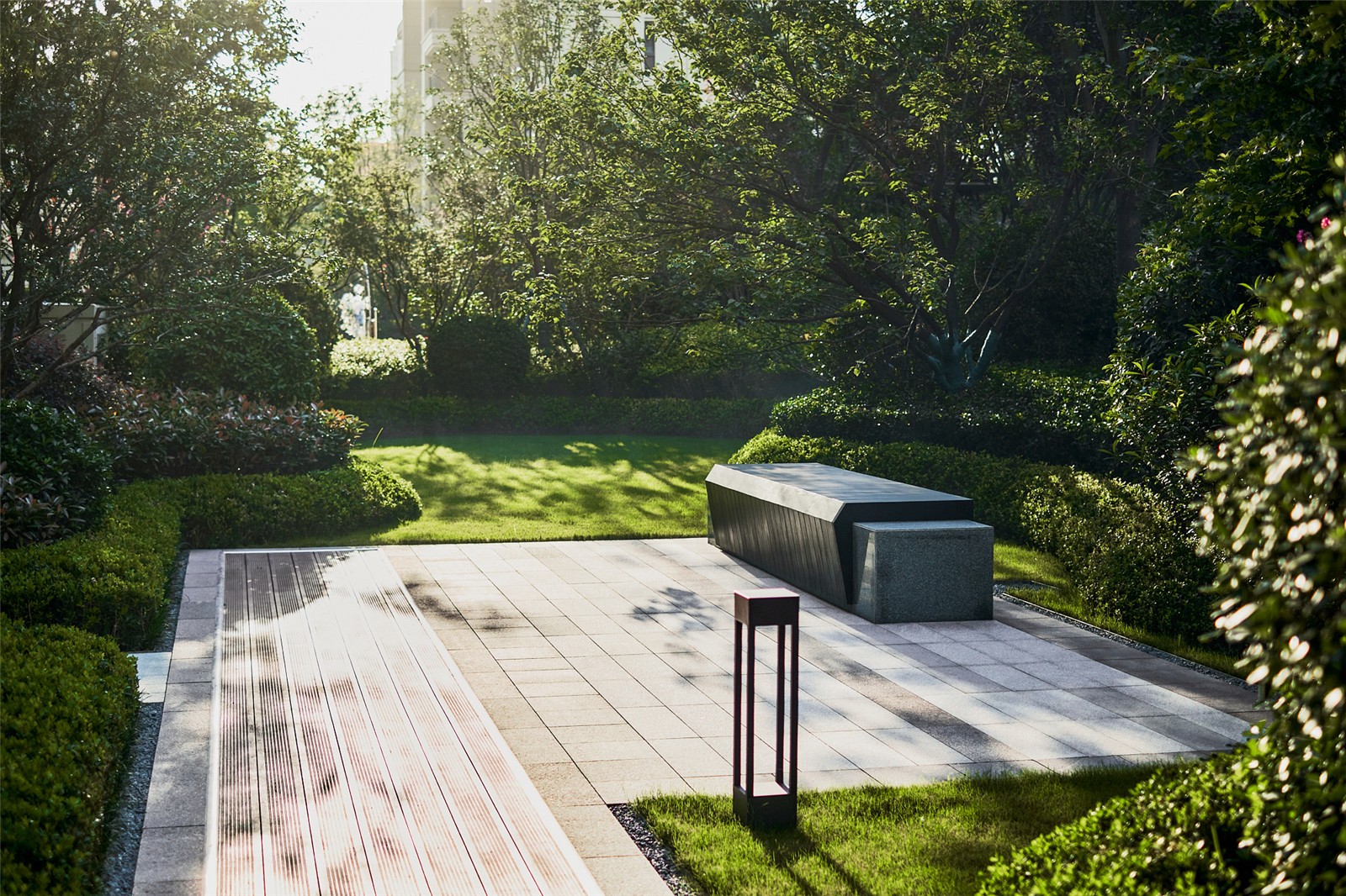 曲徑通幽,花木深藏。最是那一隅高樹林蔭下的休憩讓人舒心,最是那一盞家門口的燈光讓人釋懷。喬木的暖綠與灰色鋪石呼應(yīng),寧靜以致遠(yuǎn),淡然中抵達(dá)心靈最純潔之處。