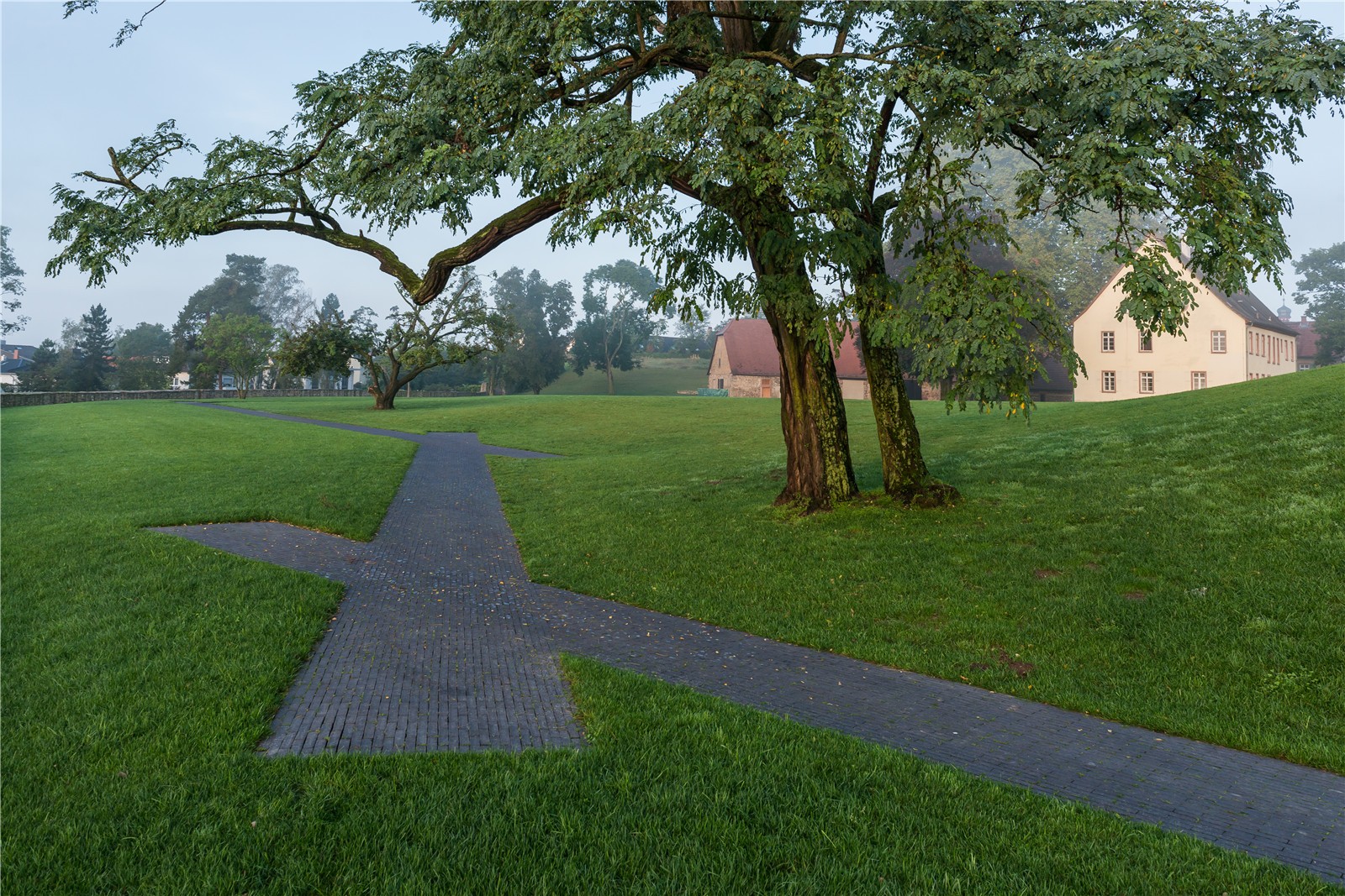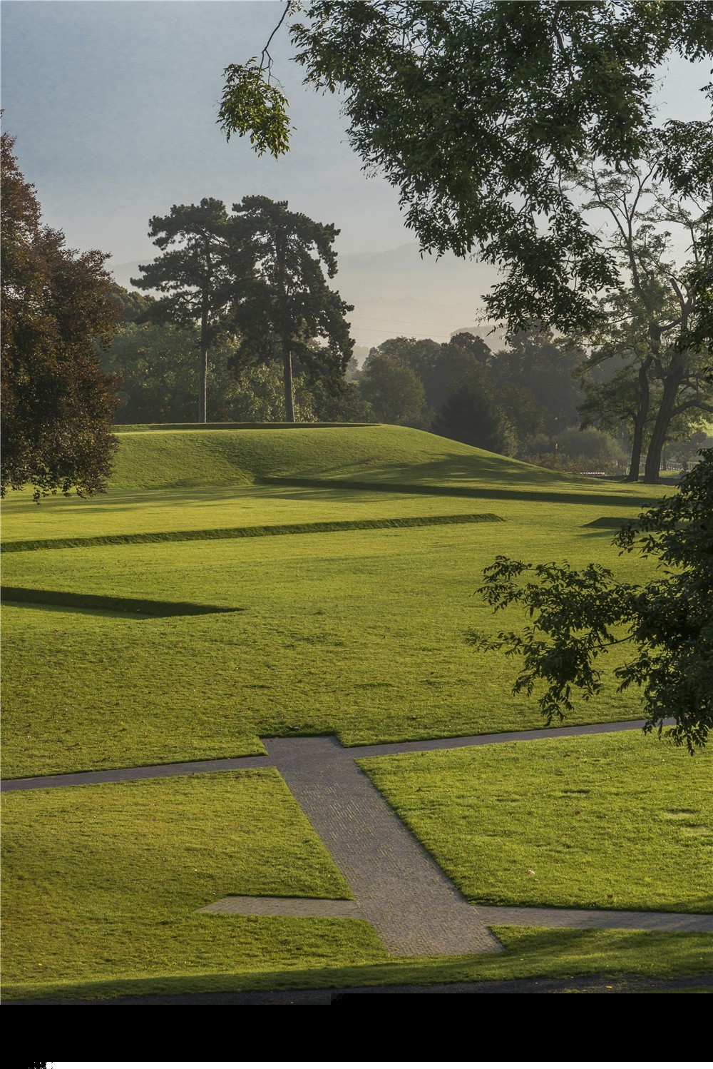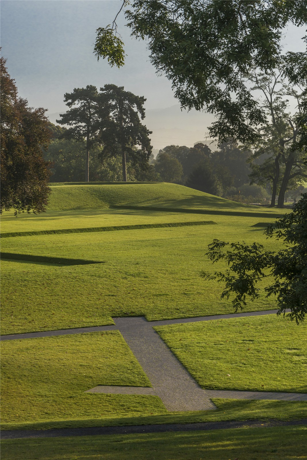 我們團(tuán)隊(duì)的設(shè)計(jì)理念是將歷史作為一種景觀呈現(xiàn)出來。不同于過去常用的歷史可視化手法,我們的設(shè)計(jì)強(qiáng)調(diào)地面的處理,嚴(yán)謹(jǐn)而細(xì)膩的地形處理凸顯了那些未經(jīng)修飾的遺跡,為場(chǎng)地提供了展示自己的 "舞臺(tái) "。我們改造了修道院周邊地形,引導(dǎo)游客的觀景視線,并在修道院和阿爾滕明斯特僧院間增設(shè)了步行道。設(shè)計(jì)重現(xiàn)了這兩座宗教建筑的遺址,并覆蓋以保護(hù)性的草坪。