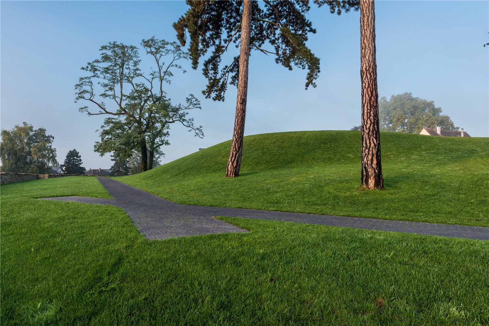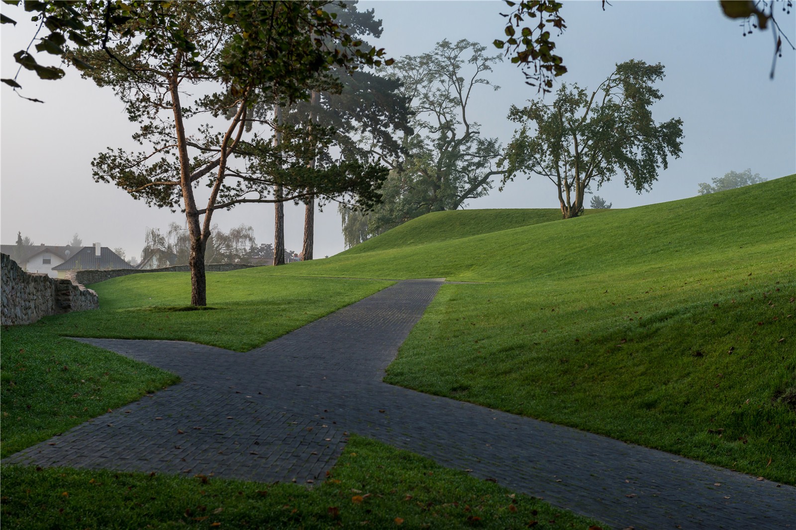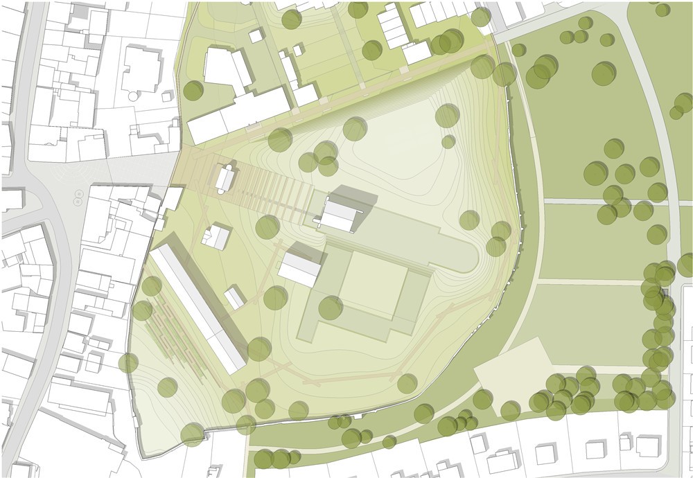 我們團(tuán)隊(duì)的設(shè)計(jì)理念是將歷史作為一種景觀呈現(xiàn)出來。不同于過去常用的歷史可視化手法,我們的設(shè)計(jì)強(qiáng)調(diào)地面的處理,嚴(yán)謹(jǐn)而細(xì)膩的地形處理凸顯了那些未經(jīng)修飾的遺跡,為場(chǎng)地提供了展示自己的 "舞臺(tái) "。我們改造了修道院周邊地形,引導(dǎo)游客的觀景視線,并在修道院和阿爾滕明斯特僧院間增設(shè)了步行道。設(shè)計(jì)重現(xiàn)了這兩座宗教建筑的遺址,并覆蓋以保護(hù)性的草坪。